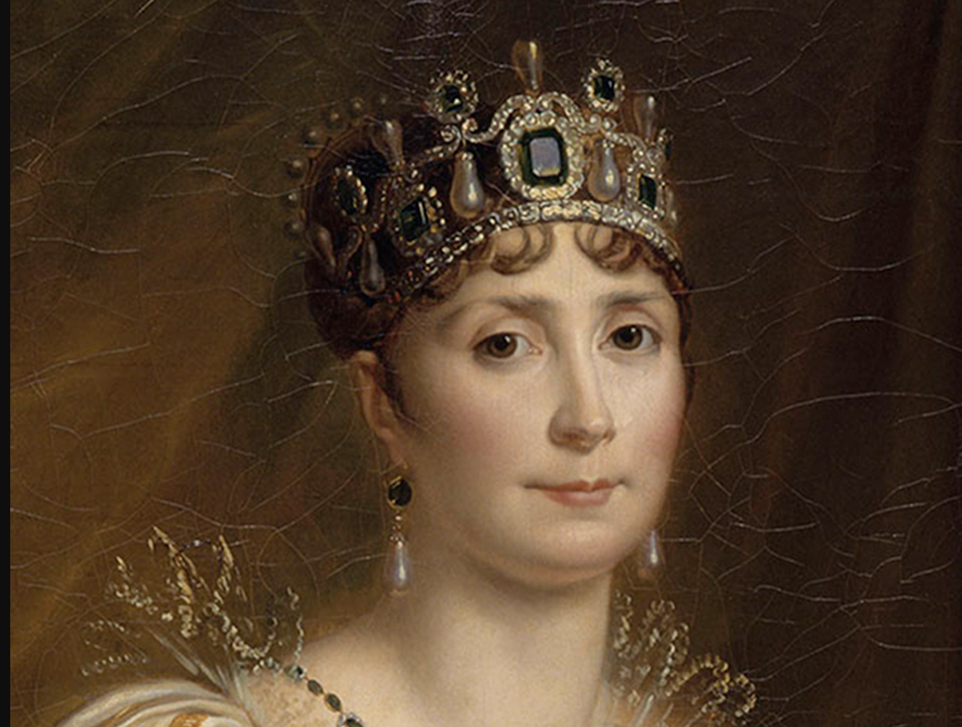 - La tiara de esmeraldas de Leuchtenberg prestada por la casa Chaumet con diseño de motivos de laurel y esmeraldas colombianas y que perteneció a la familia Bonaparte.