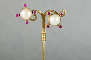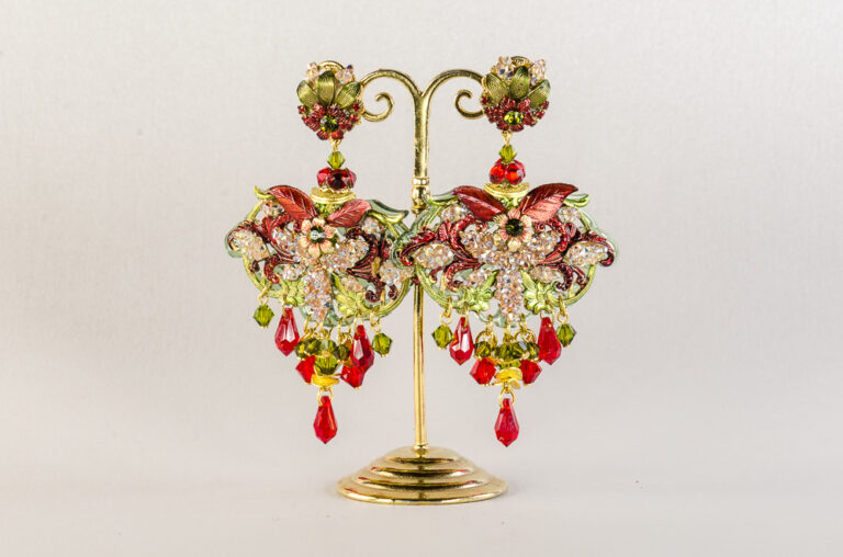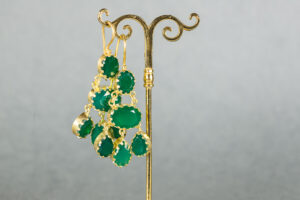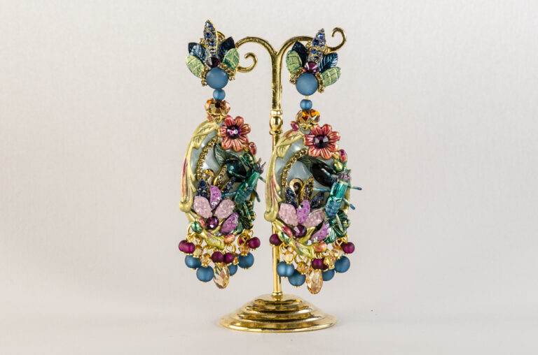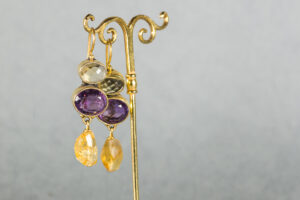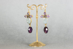 Pendientes de plata dorada piedras semipreciosas y perla de agua dulce. Inspirados en la obra de Botticelli “La Fortaleza”.