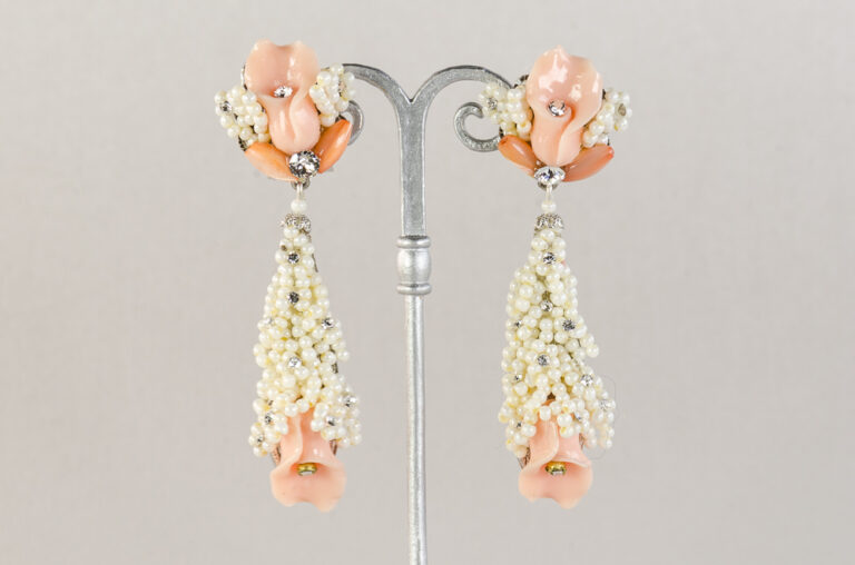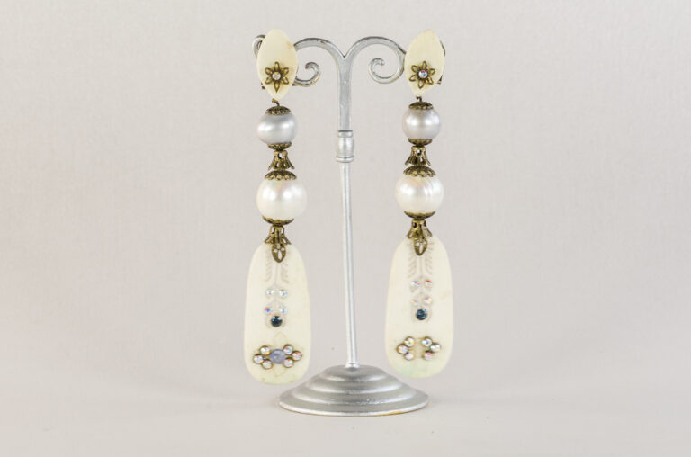 Pendientes en nácar blanco, cristal de swarovski y perlas de rio.