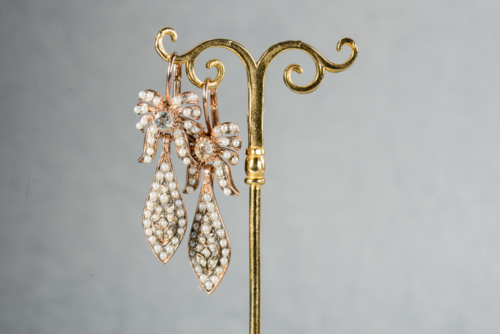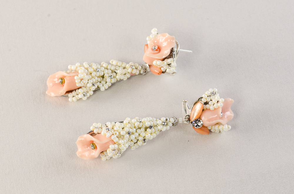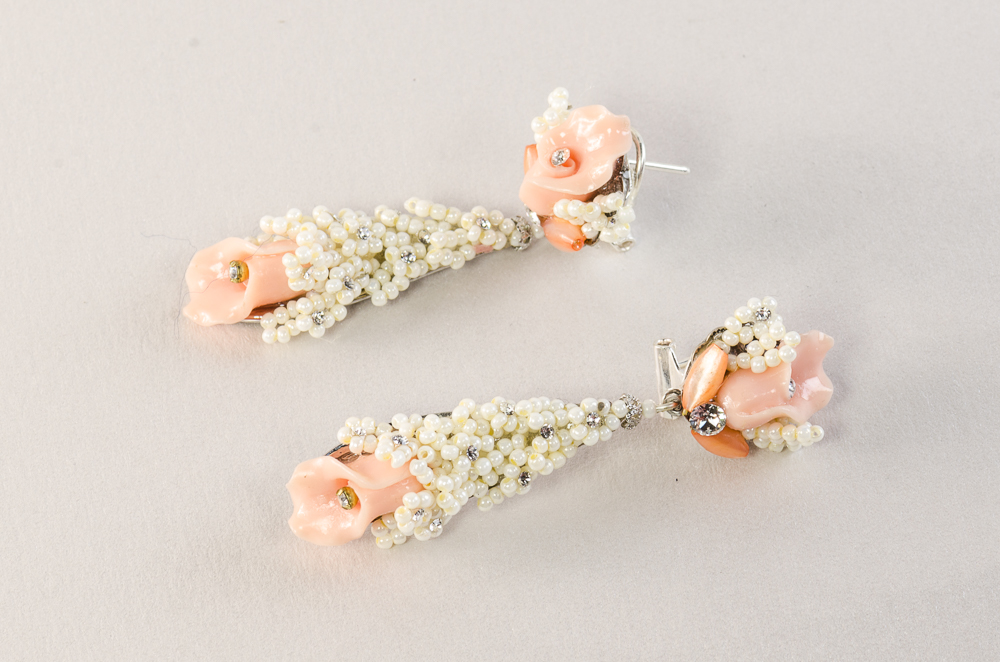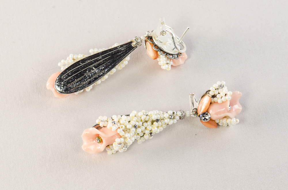 Pendientes en nácar blanco, cristal de swarovski y perlas de rio.