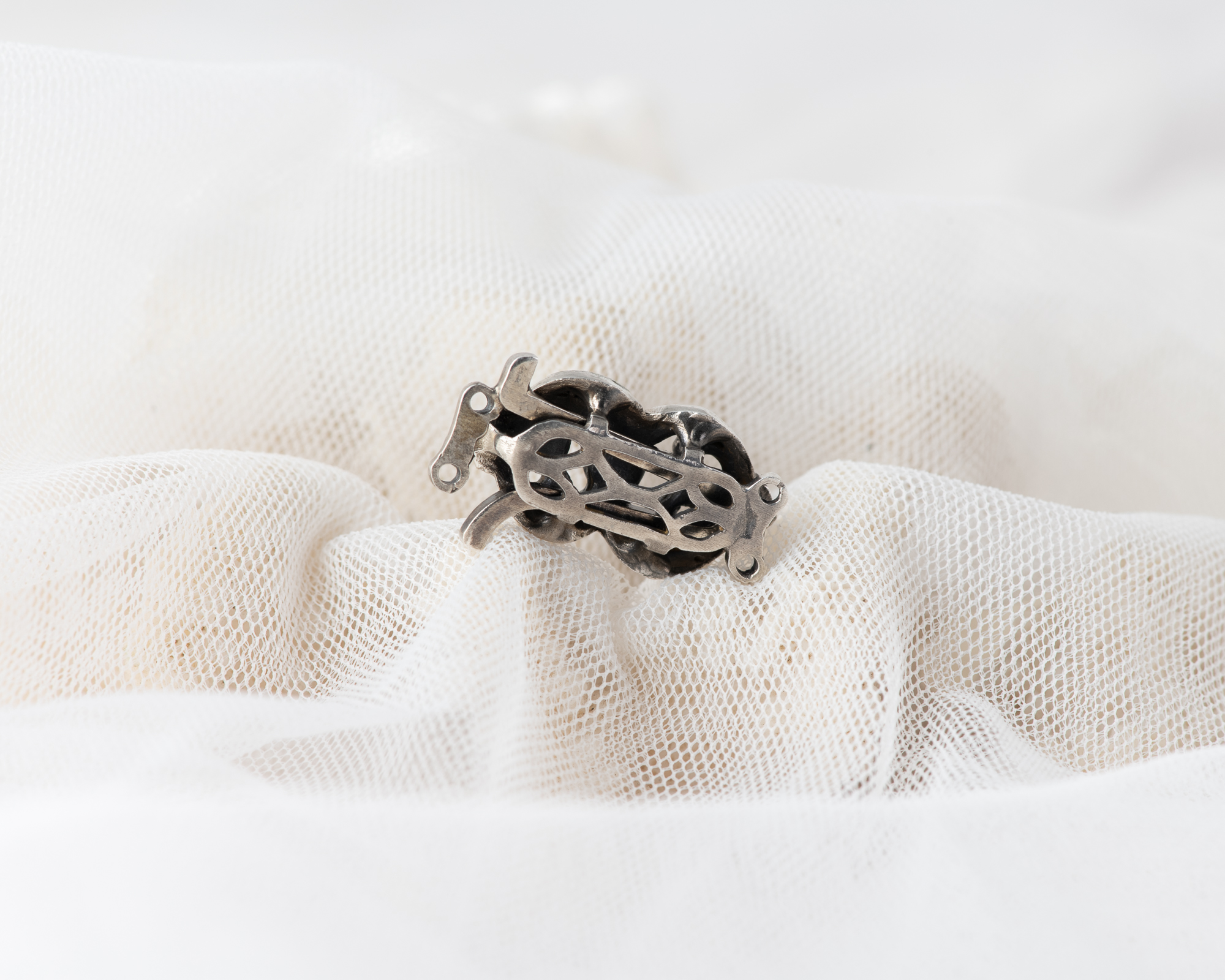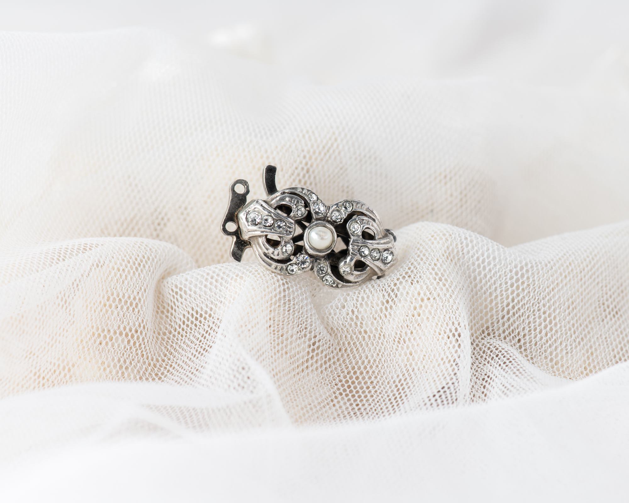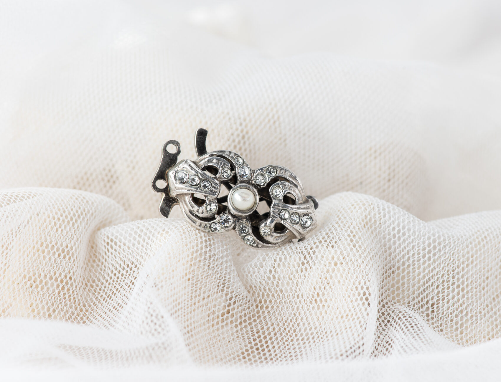 Cierre para collar de perlas, realizado a mano en plata con cristales y una perla de agua dulce. Dependiendo del tamaño de las perlas puede ser para collares de uno o dos hilos.