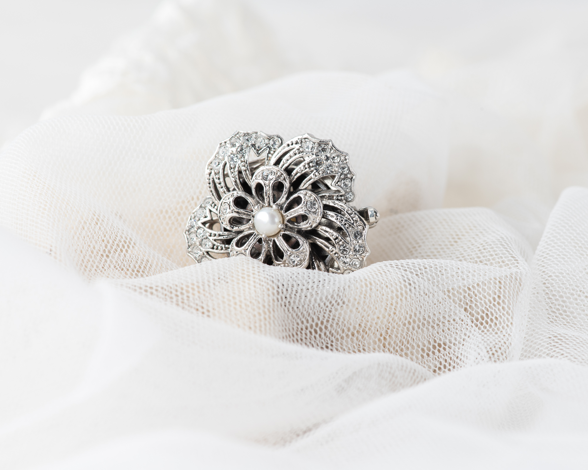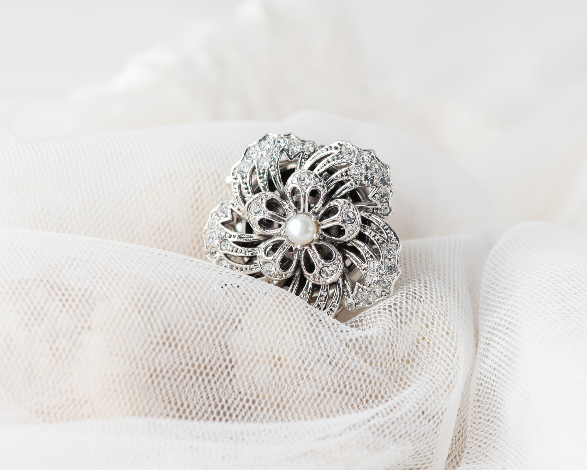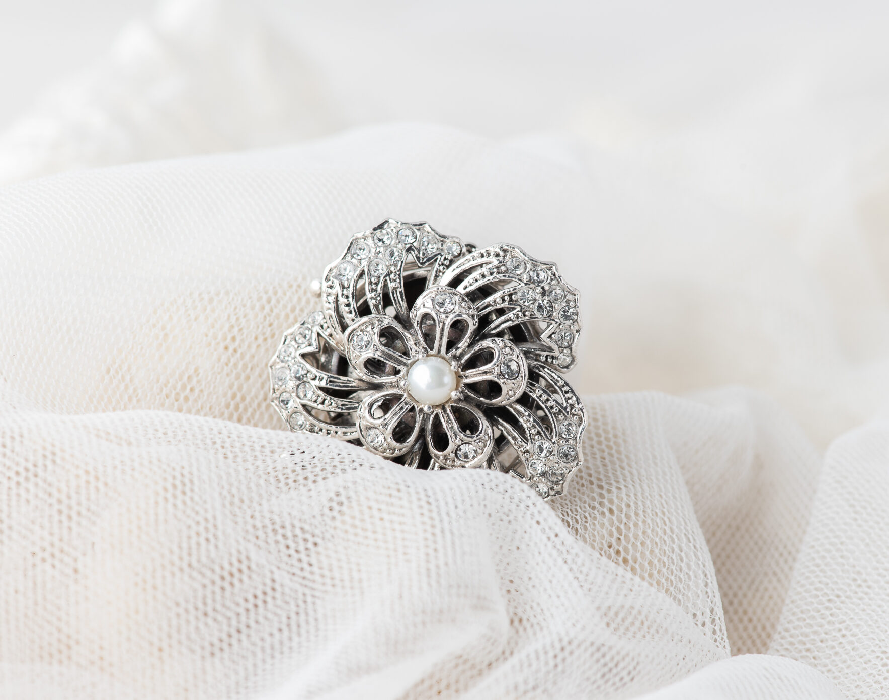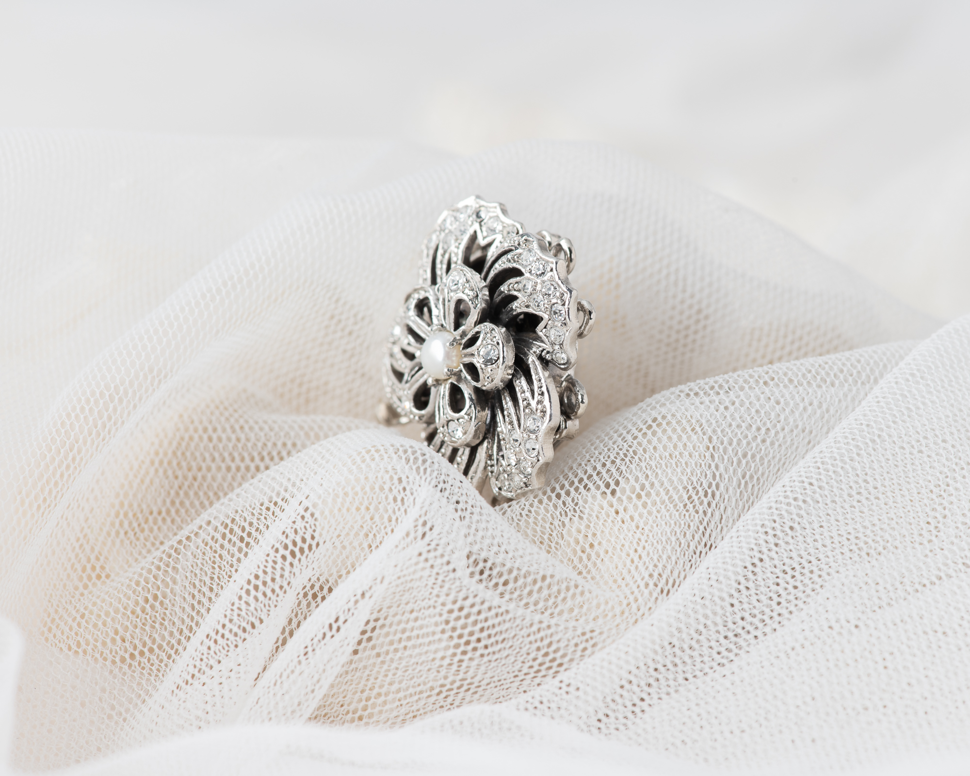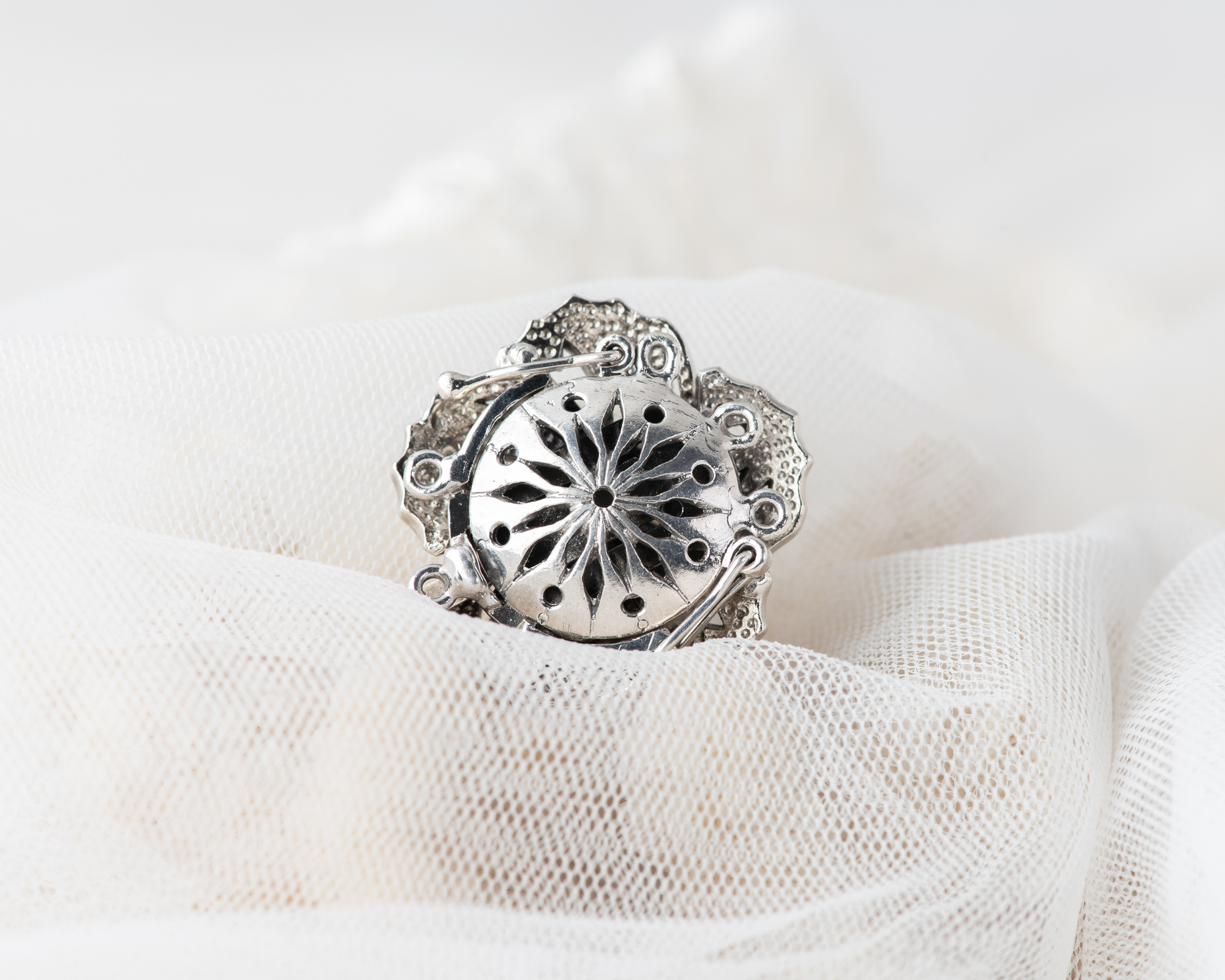 Cierre para collar de perlas, realizado a mano en plata con cristales y una perla de agua dulce. Dependiendo del tamaño de las perlas puede ser para collares de 2 o 3 hilos.