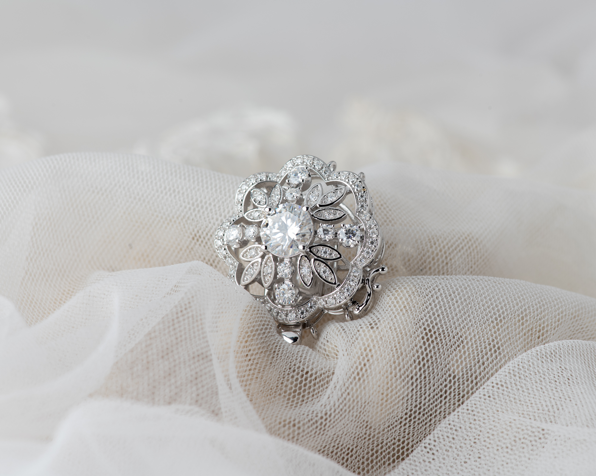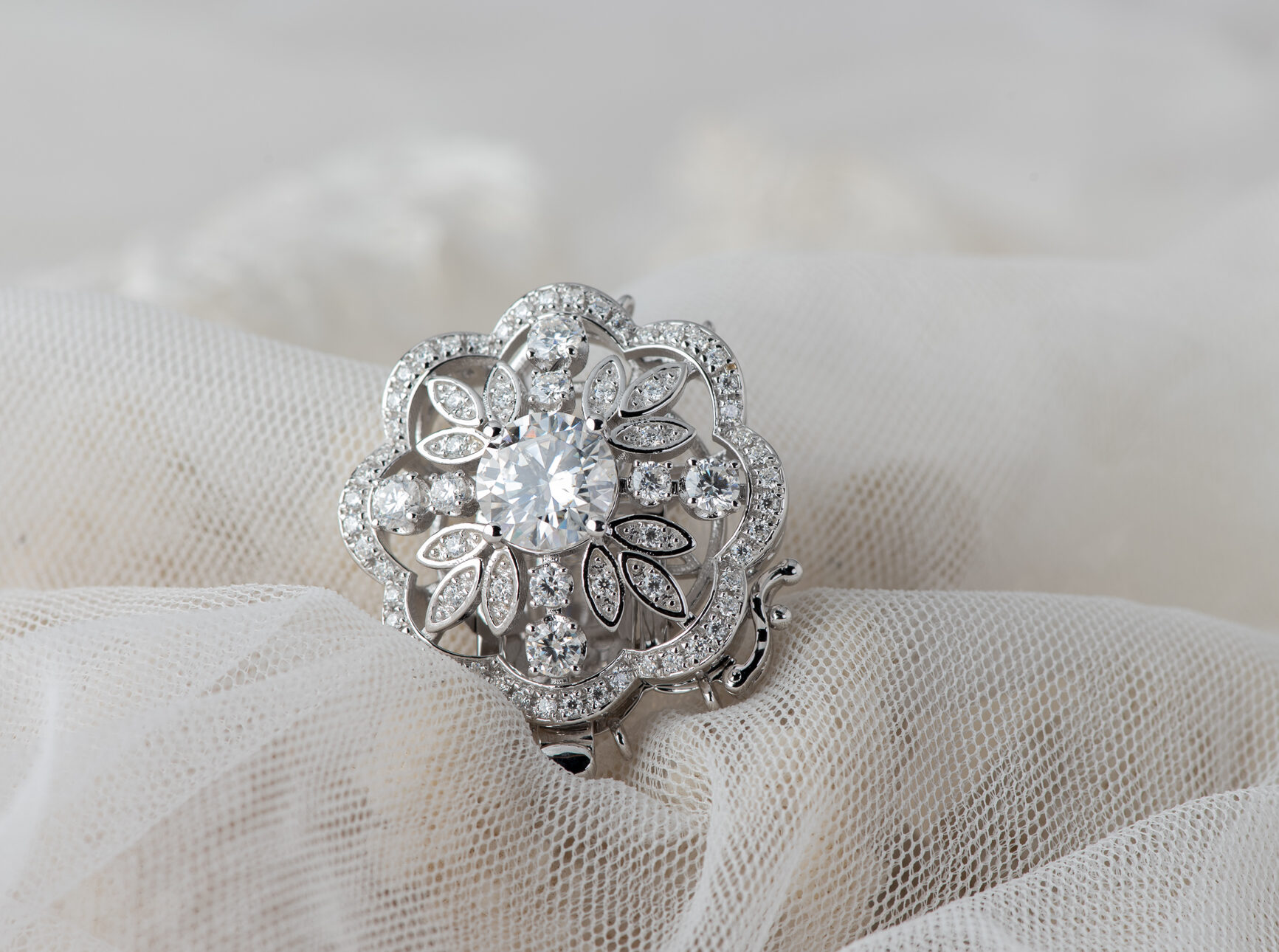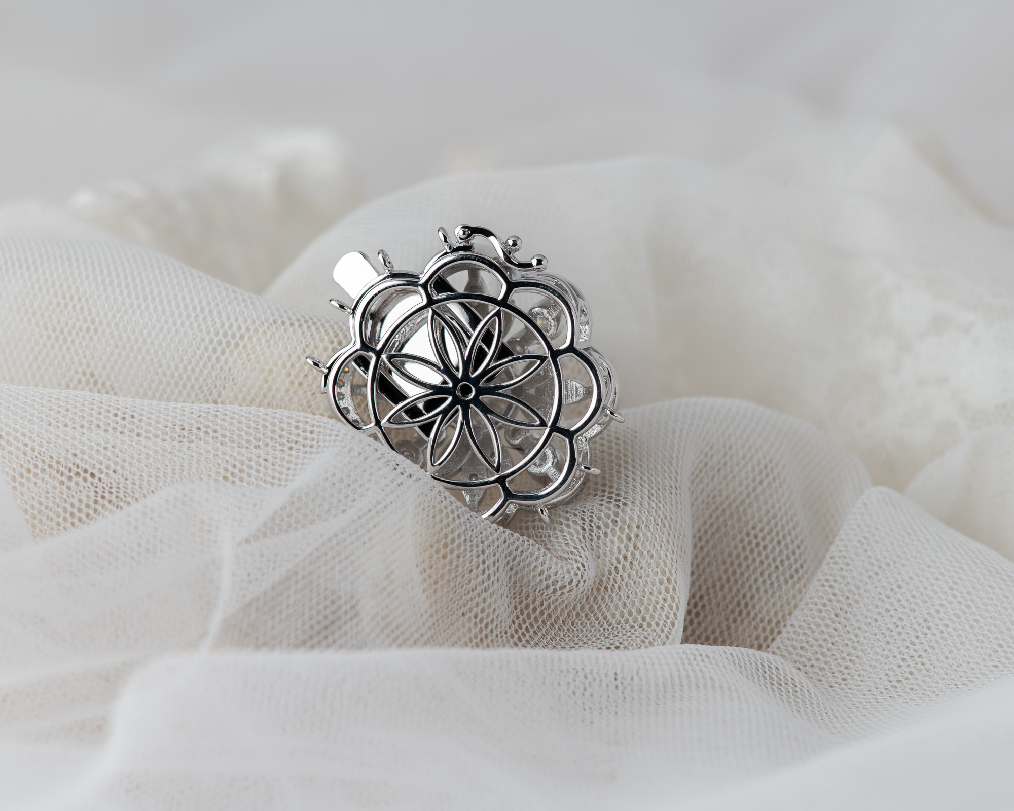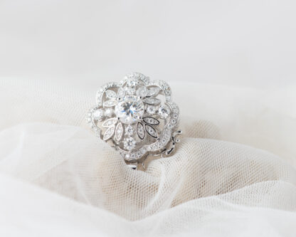 Cierre para collar de perlas, realizado a mano en plata con circonitas, para collares de perlas de 3 hilos. También puede hacerse con una perla de agua dulce en el centro.