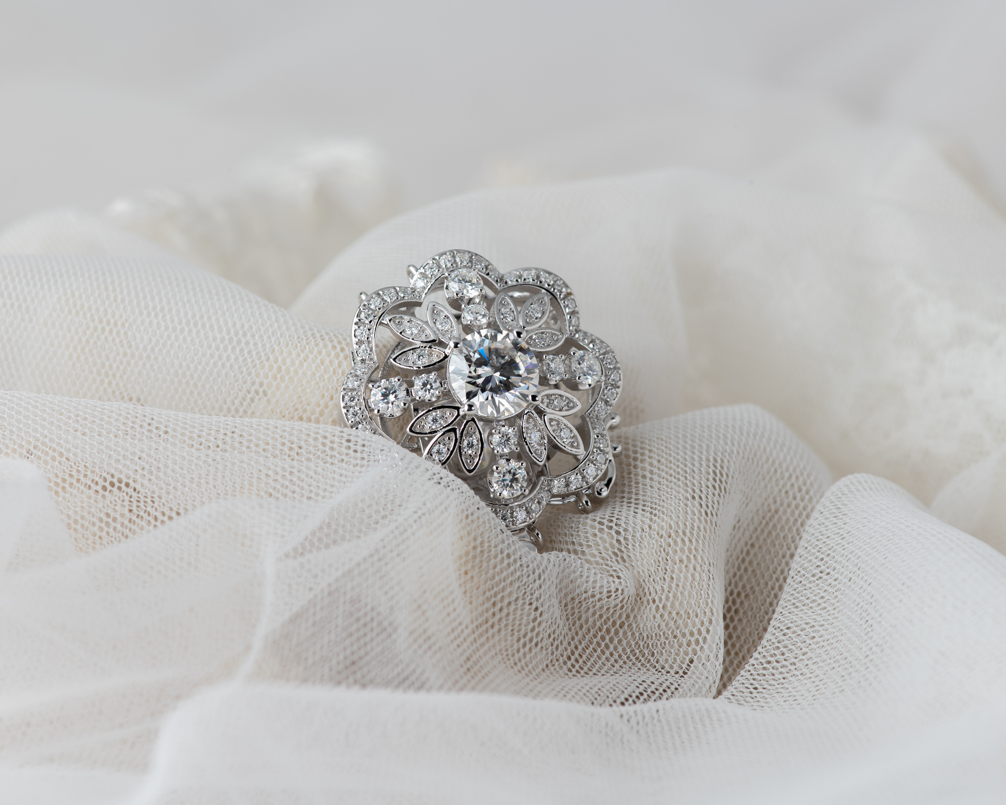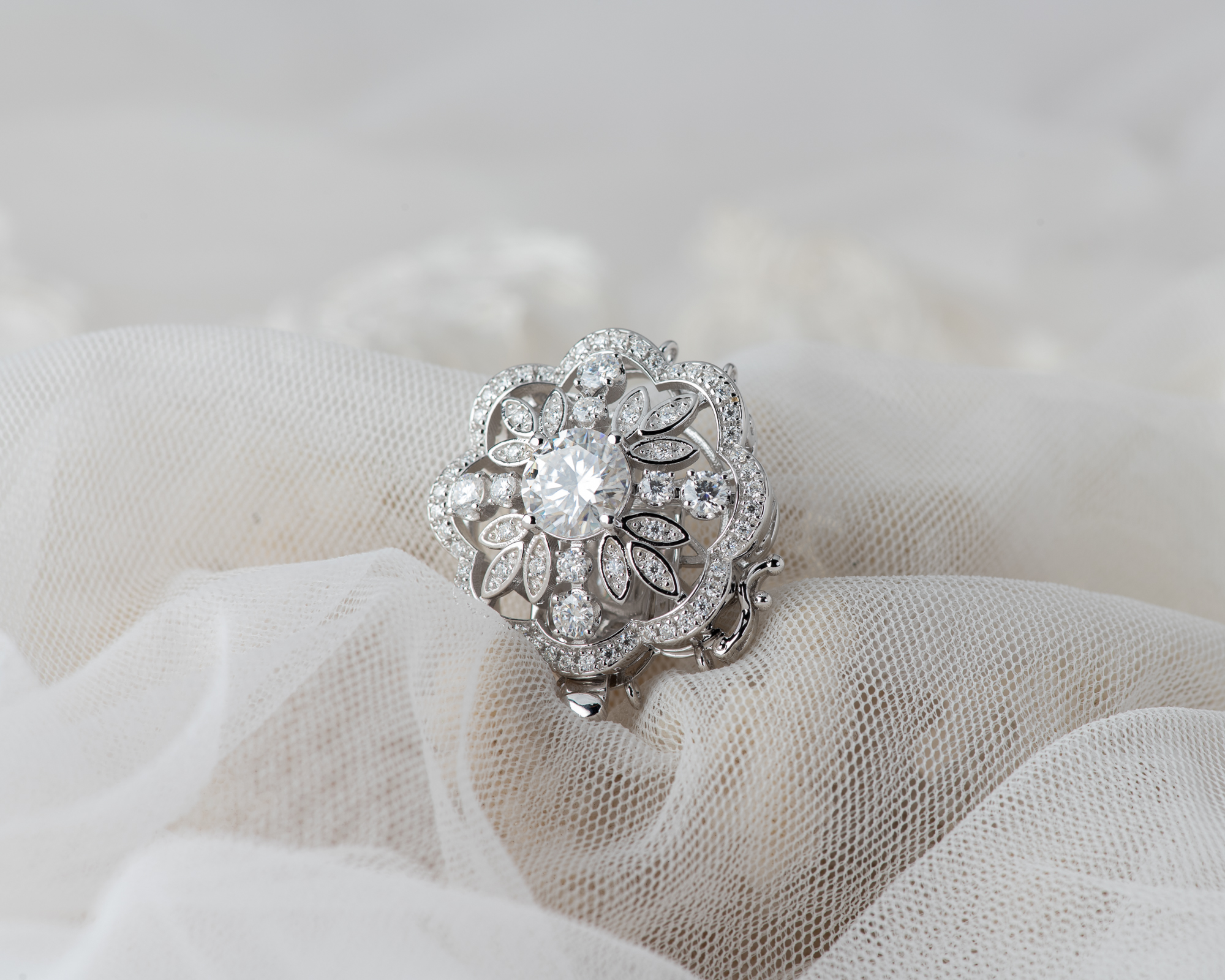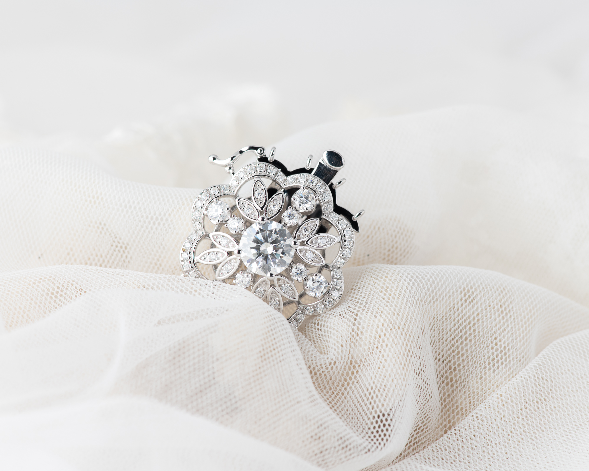 Cierre para collar de perlas, realizado a mano en plata con circonitas, para collares de perlas de 3 hilos. También puede hacerse con una perla de agua dulce en el centro.