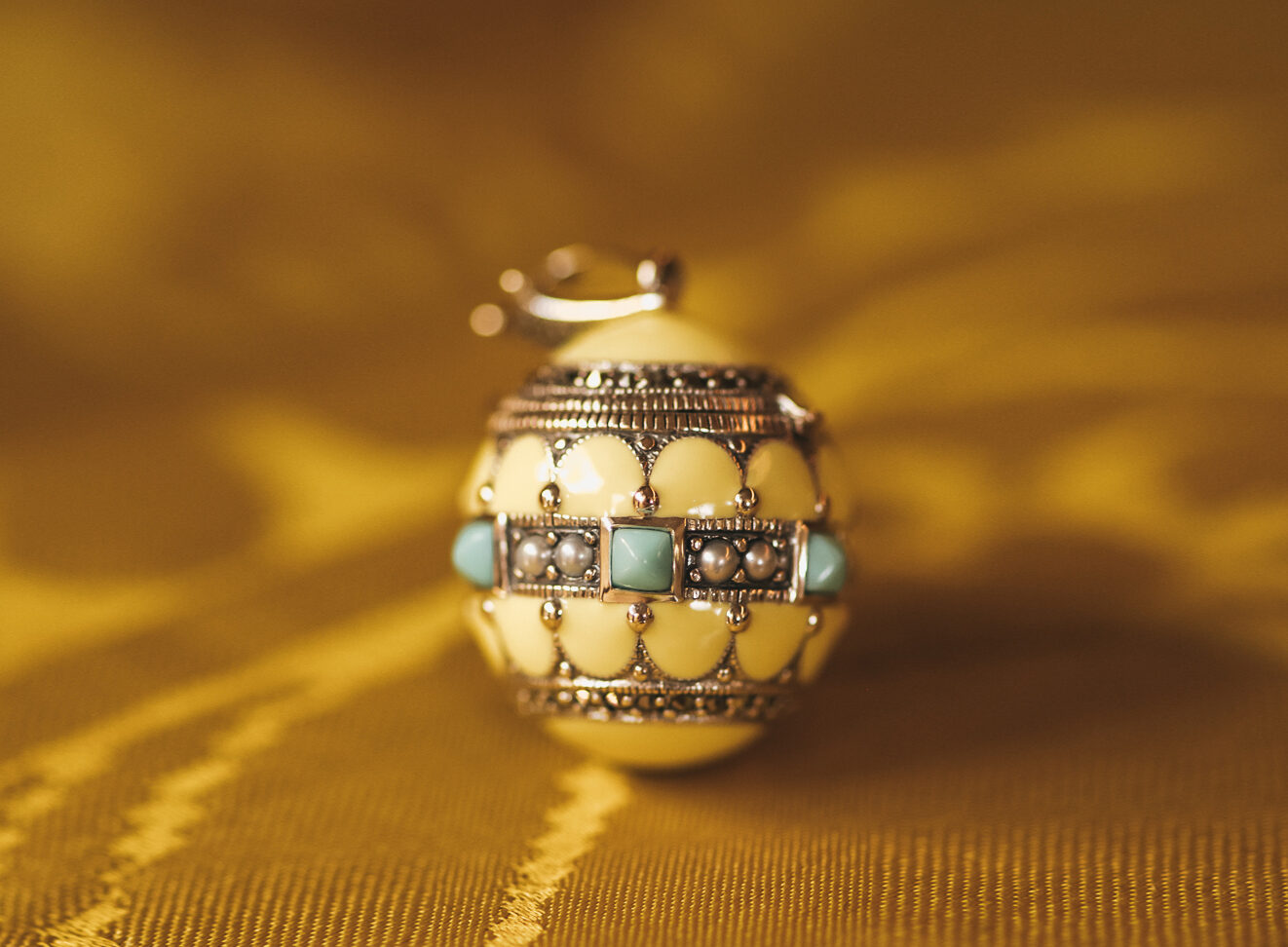Este colgante, inspirado en los legendarios huevos de Fabergé, es una joya de ensueño que combina arte, historia y delicadeza. Realizado a mano en plata, está recubierto con un exquisito esmalte amarillo, profundo y luminoso, que evoca los lujosos esmaltes de las cortes imperiales rusas.