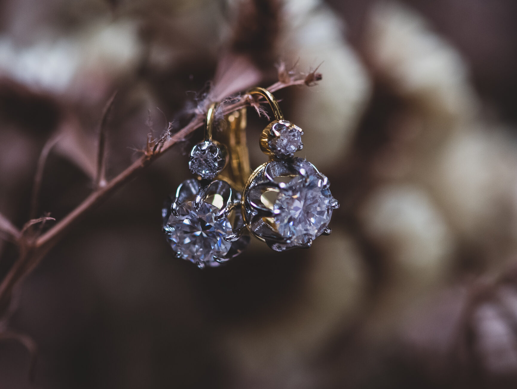 Pendientes realizados en plata y plata bañada en oro con una moissanita de 7mm y una circonita