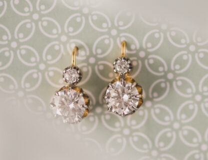 Pendientes realizados en plata y plata bañada en oro con una moissanita de 6.5mm y una circonita