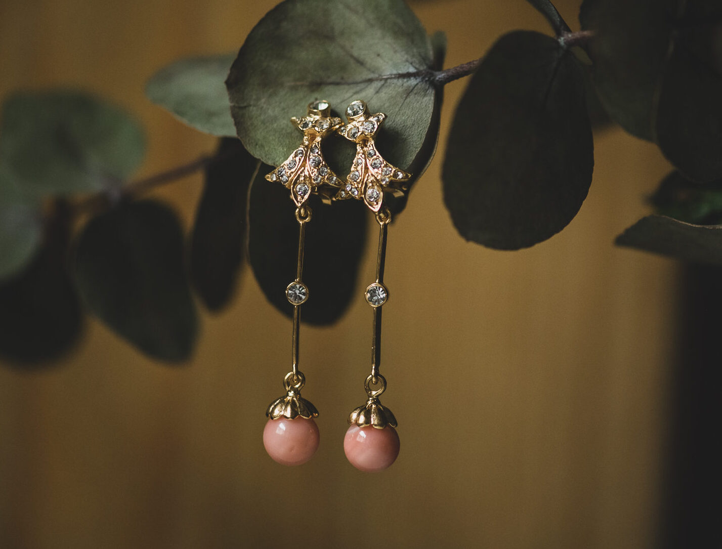 Pendientes de plata bañada en oro con circonitas y coral piel de ángel.