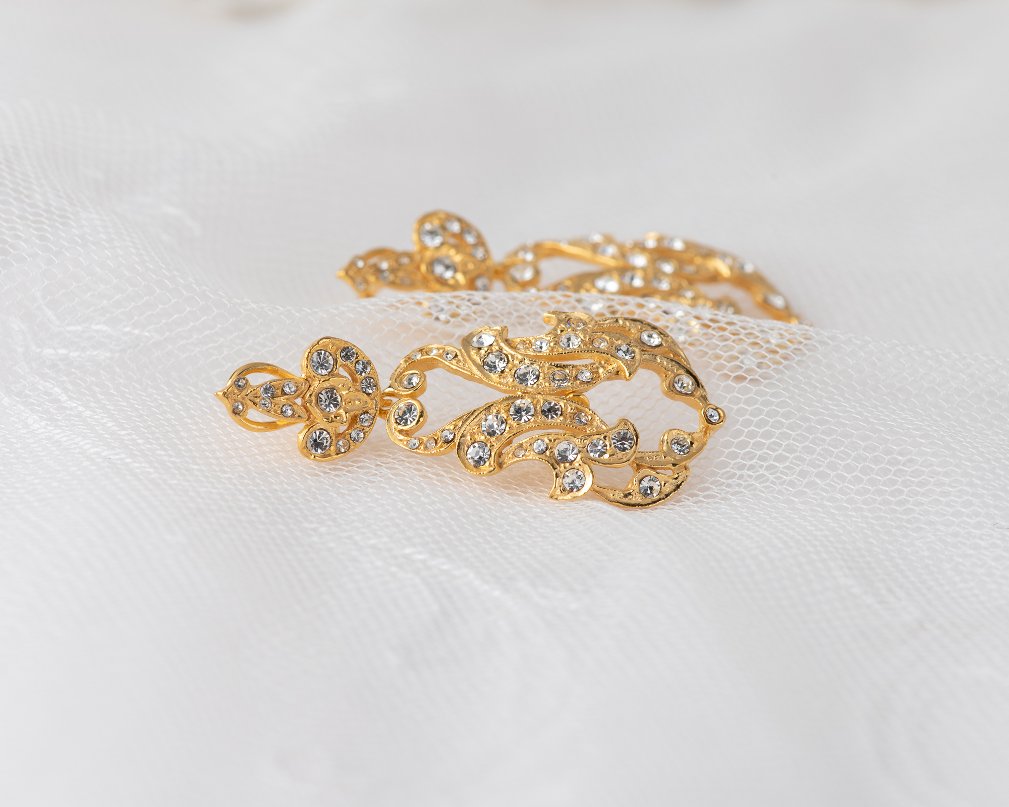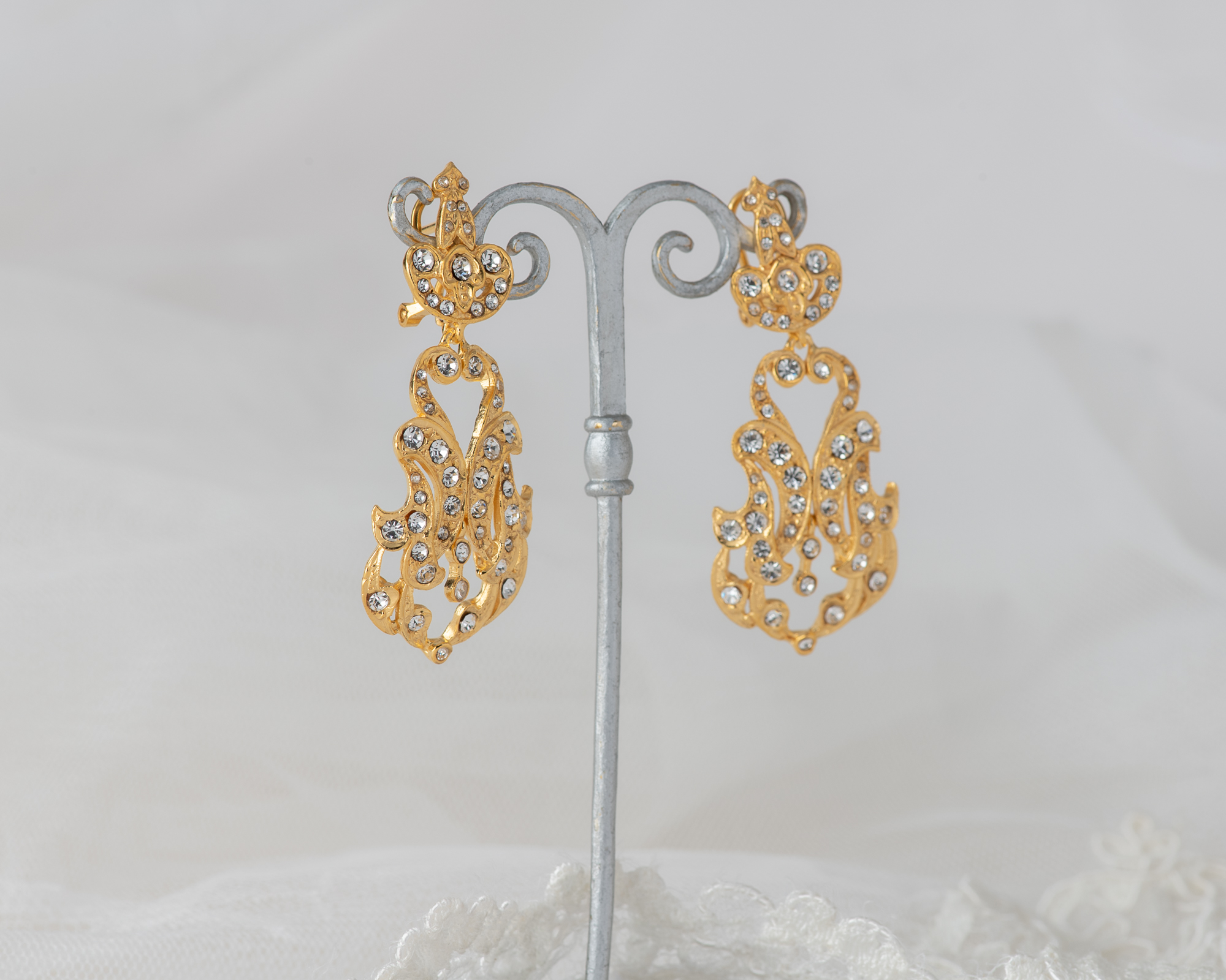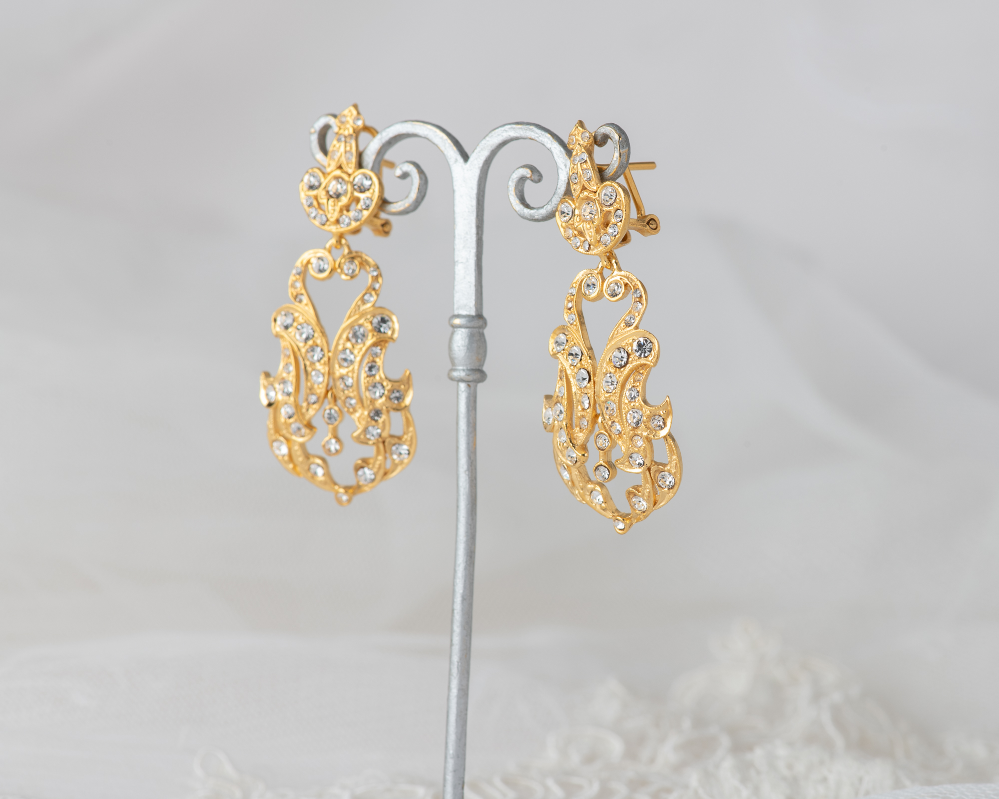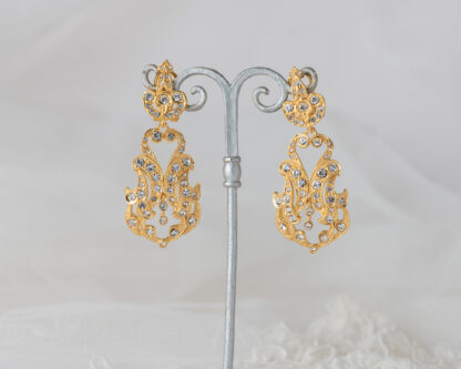 Pendientes de plata bañada en oro con circonitas. Estos pendientes están inspirados en una famosa tiara perteneciente a la Familia real Inglesa.
