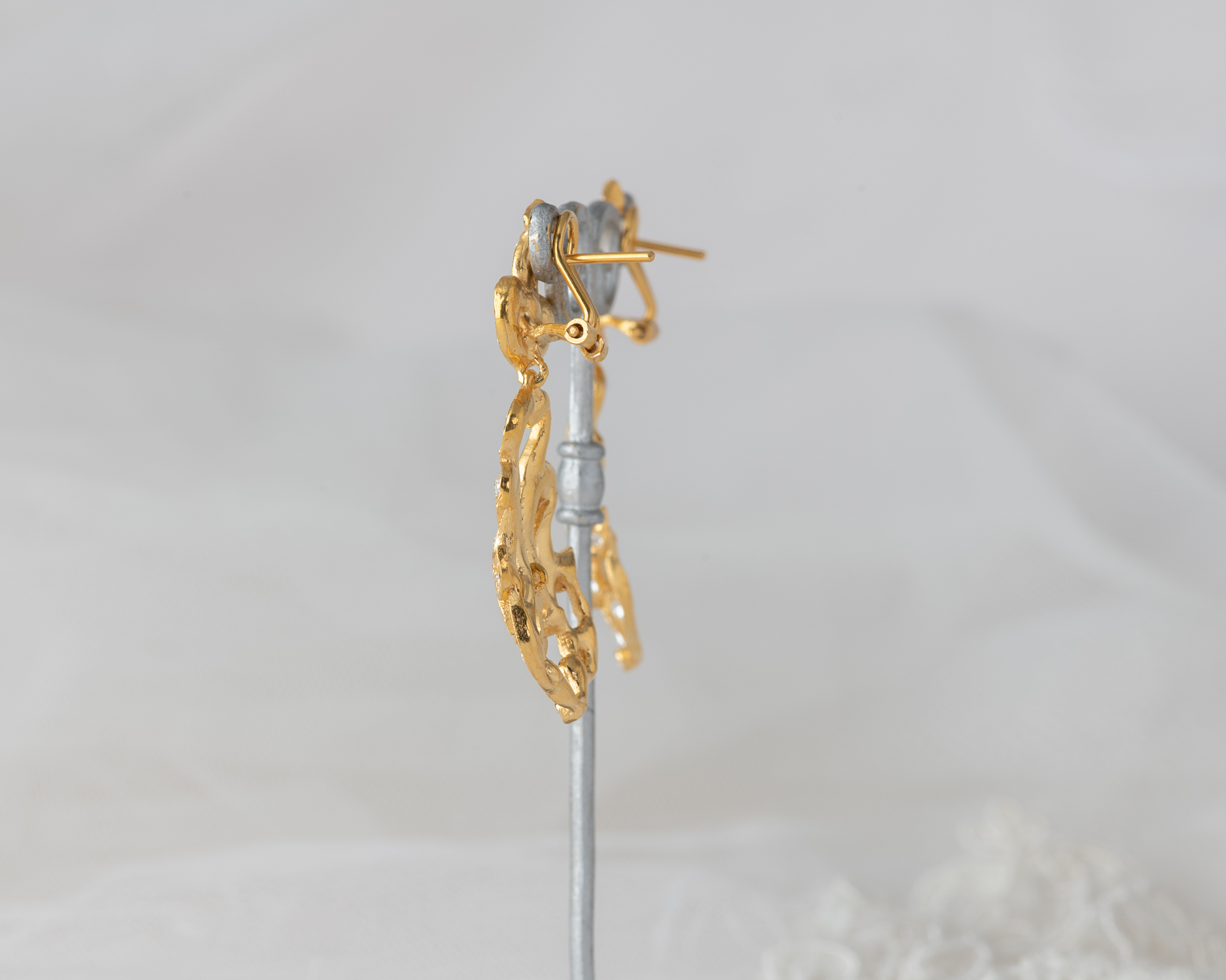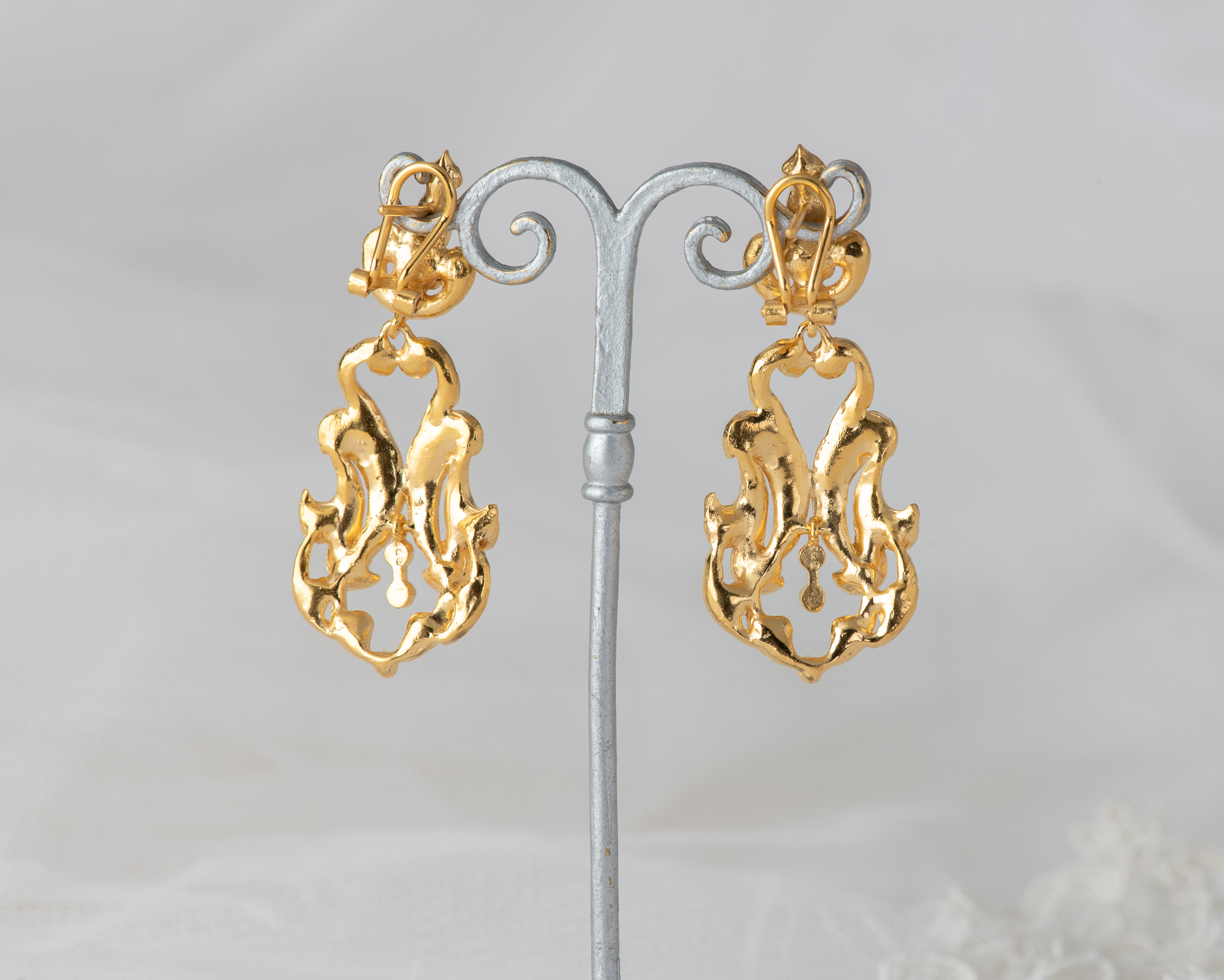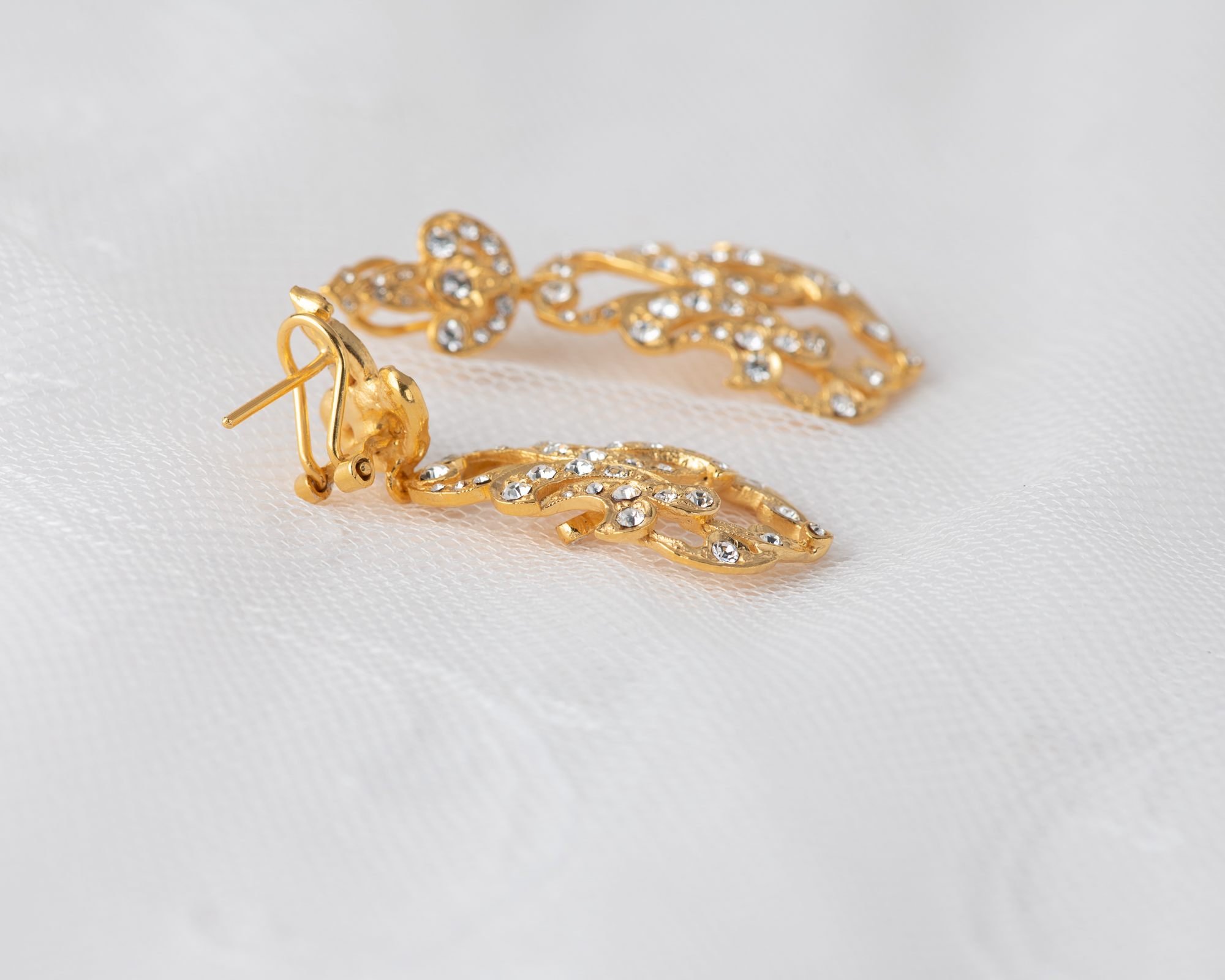 Pendientes de plata bañada en oro con circonitas. Estos pendientes están inspirados en una famosa tiara perteneciente a la Familia real Inglesa.