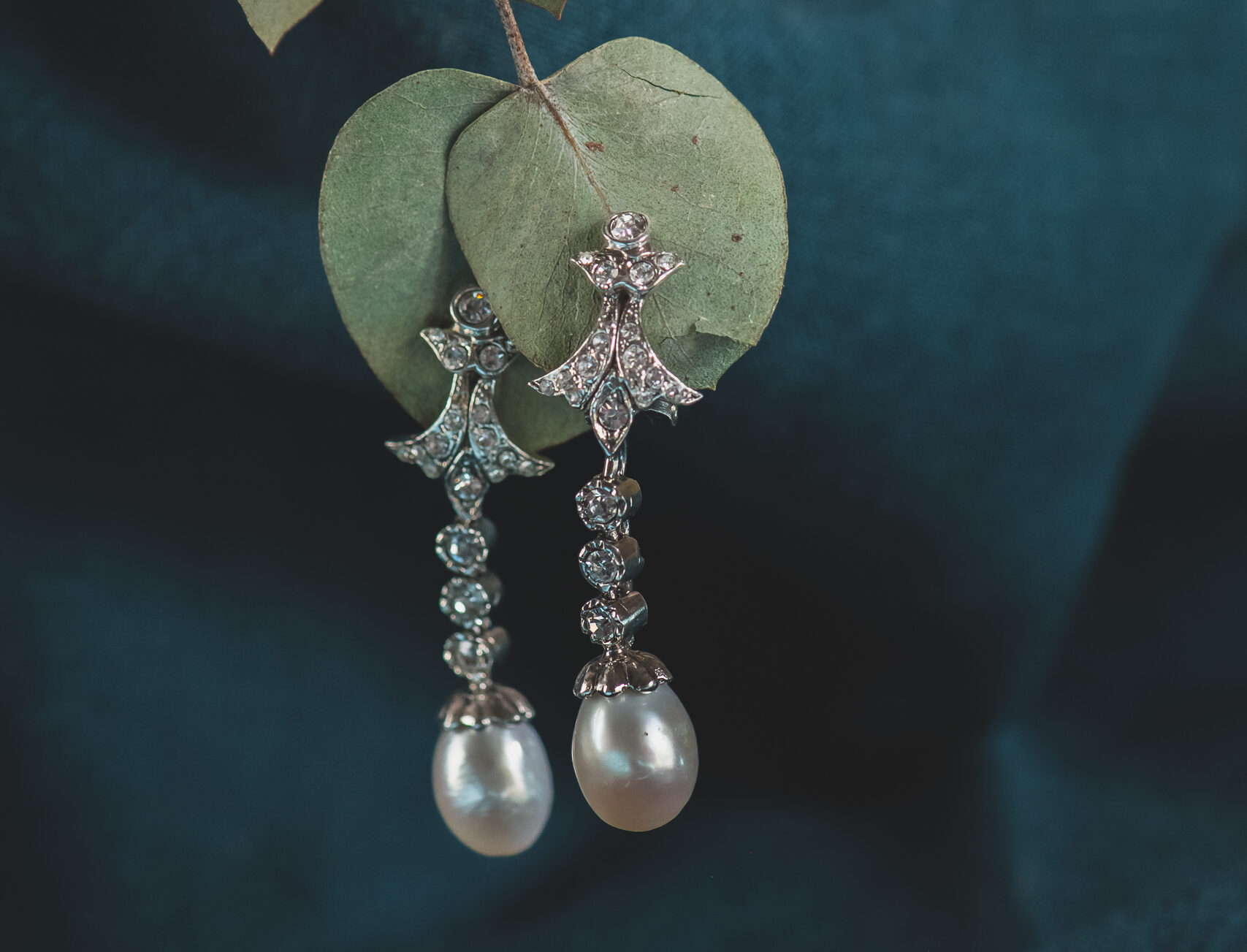 Pendientes realizados a mano en plata con circonitas y perla de agua dulce.