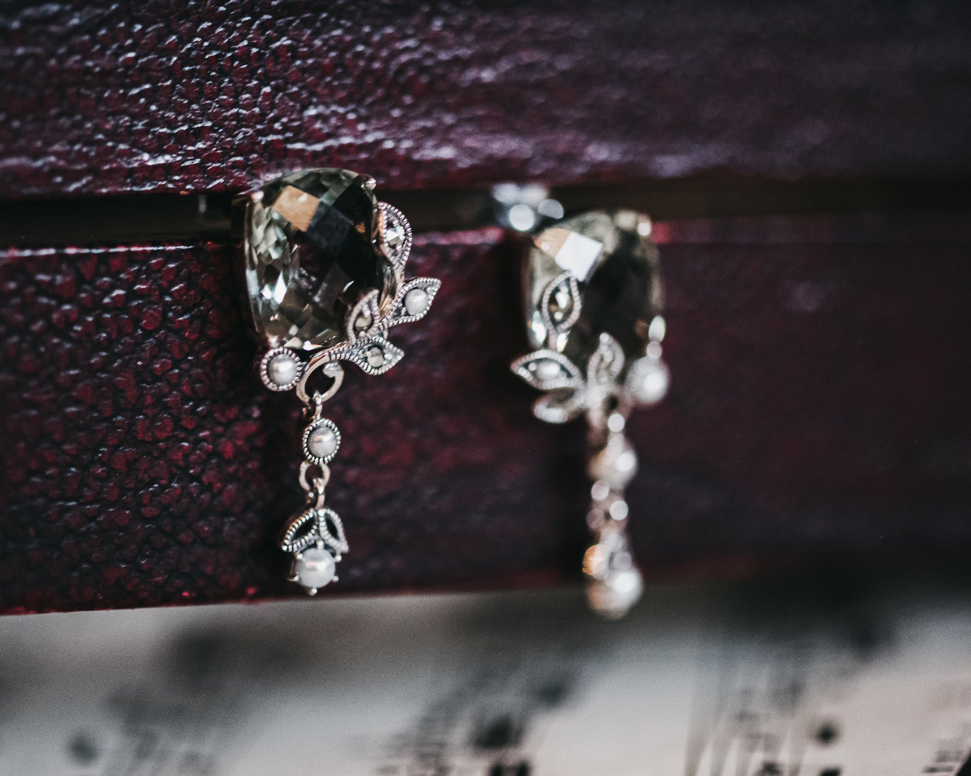 Pendientes realizados a mano en plata, marcasitas y amatista verde