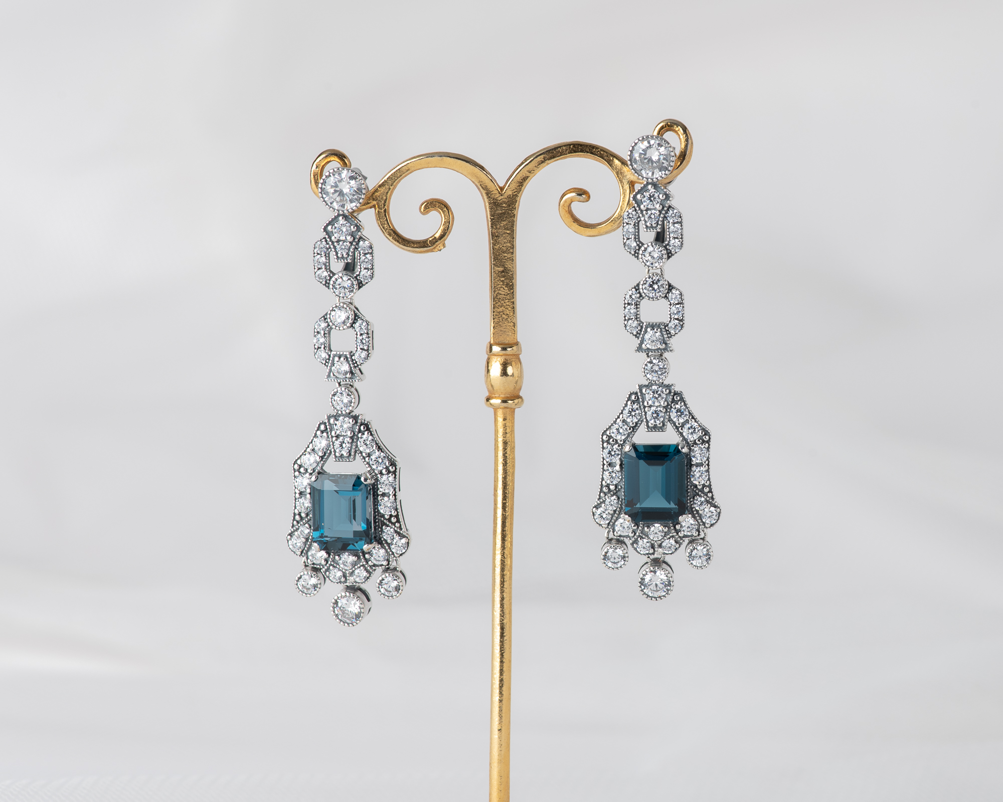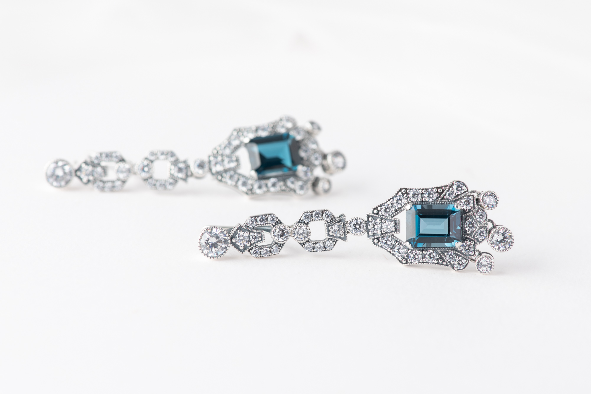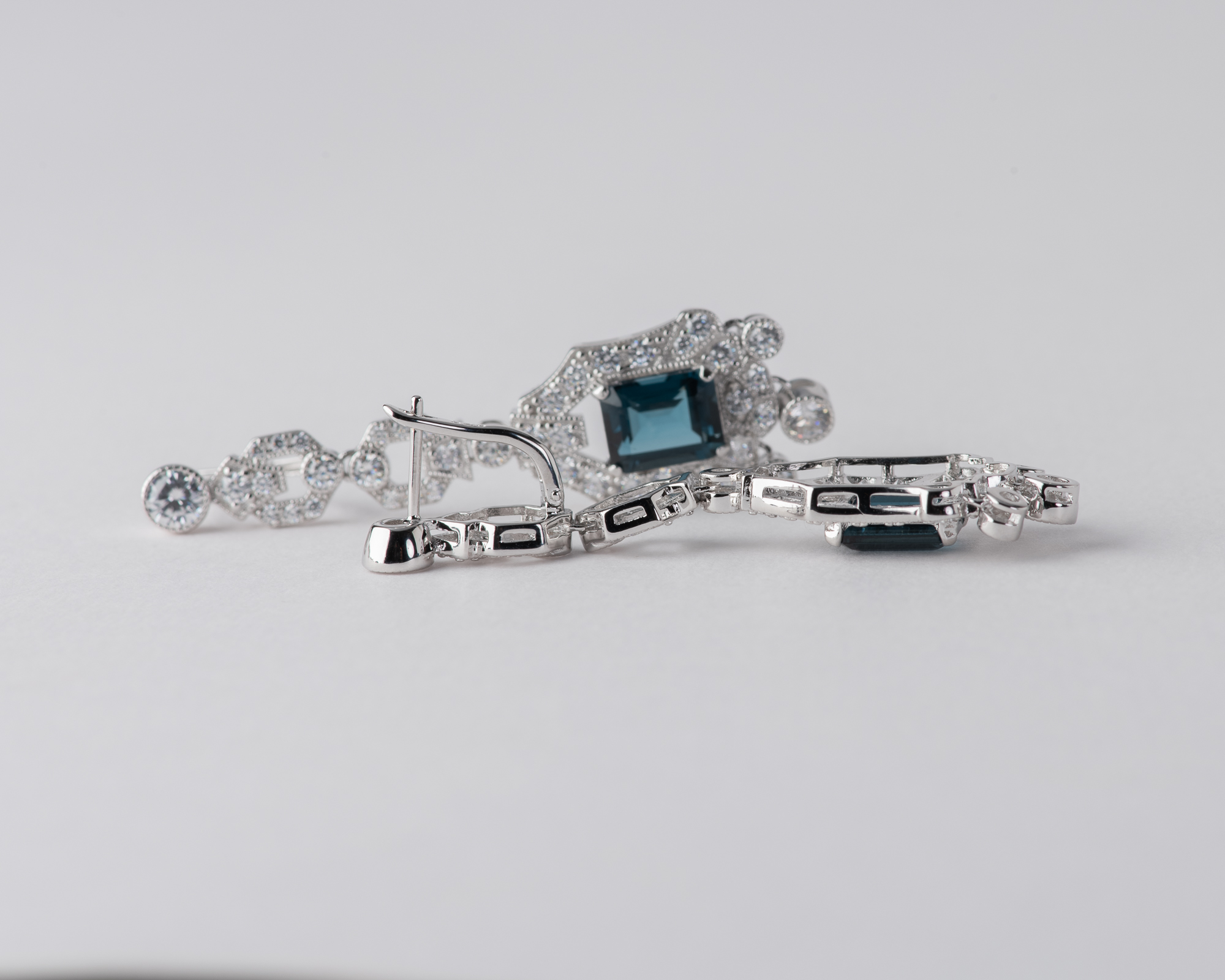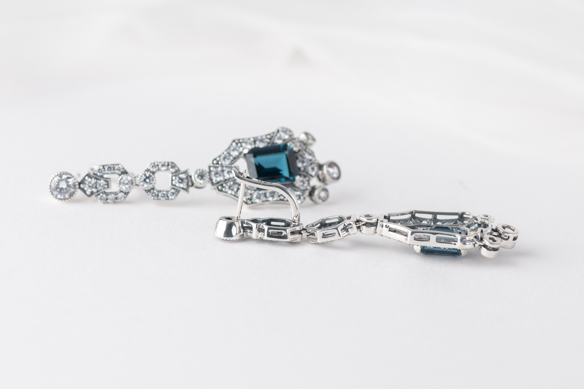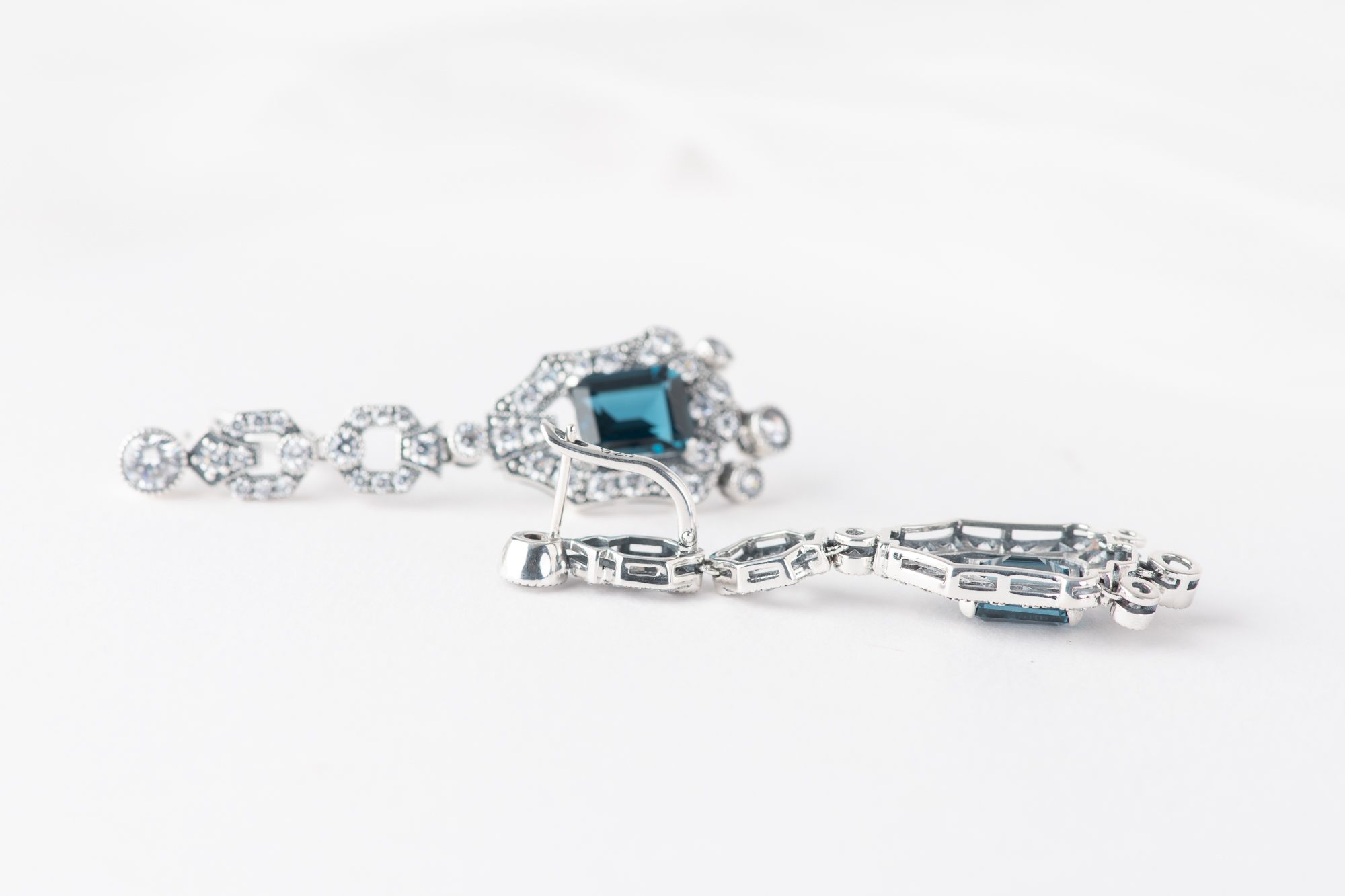 Pendientes realizados en plata con circonitas y topacio natural en tono London Blue.