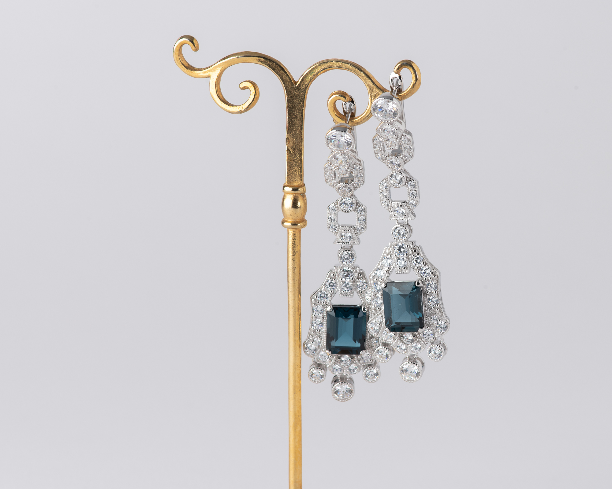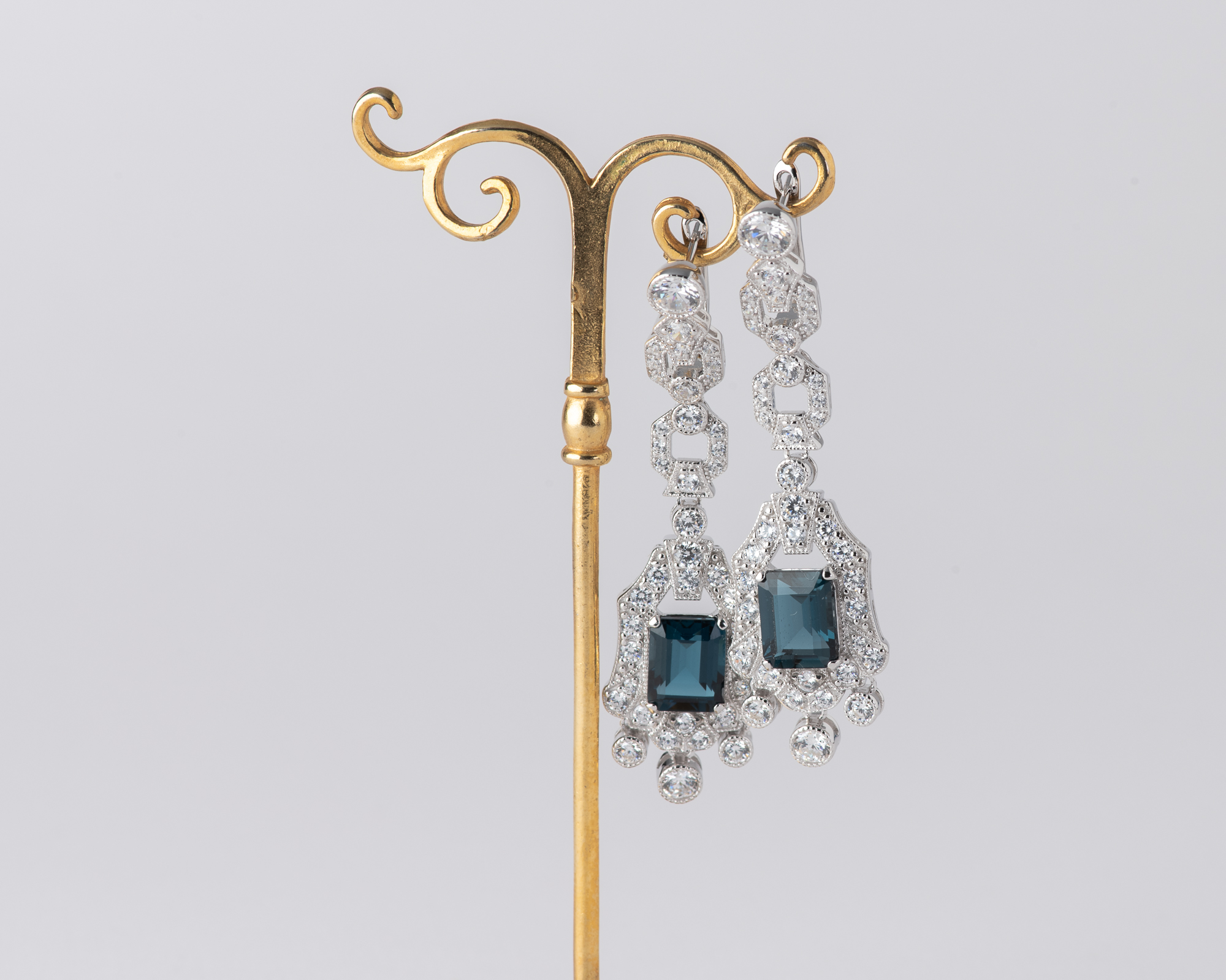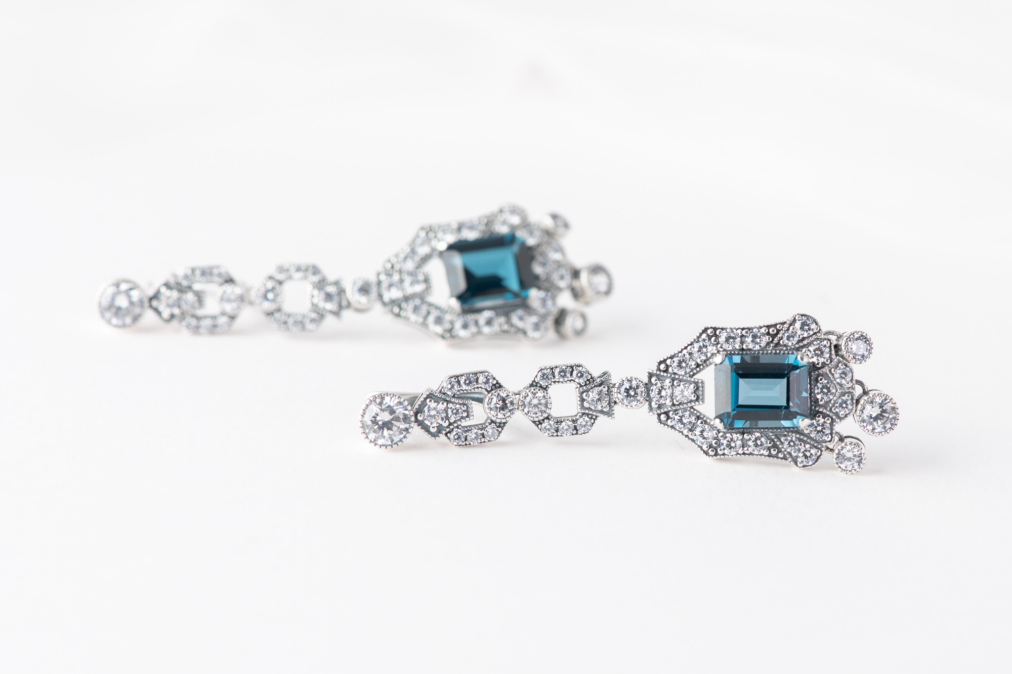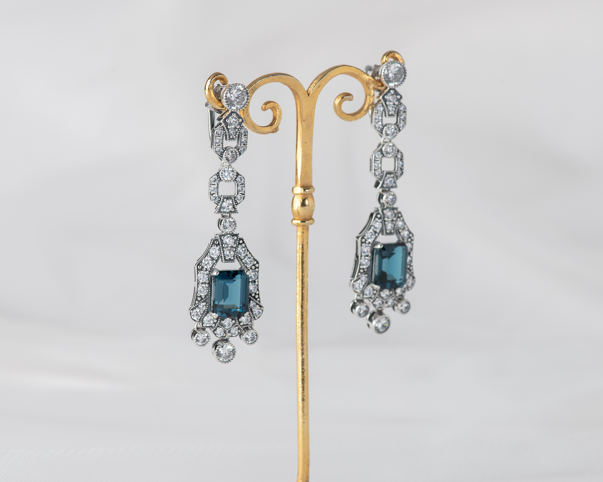 Pendientes realizados en plata con circonitas y topacio natural en tono London Blue.