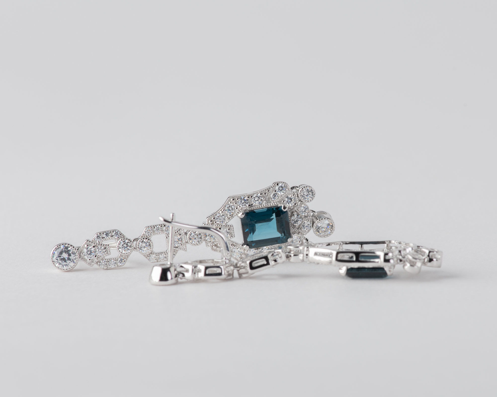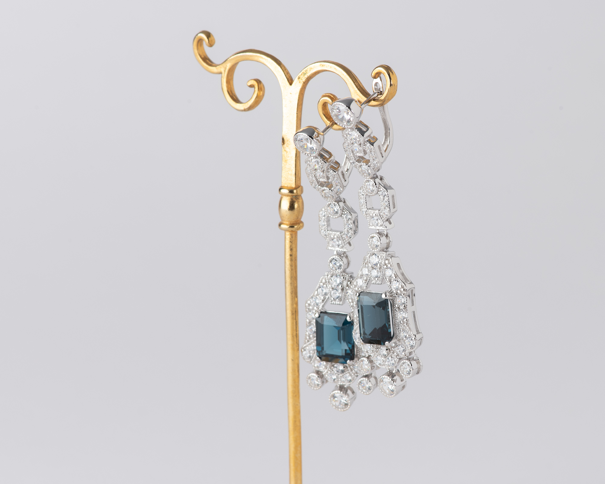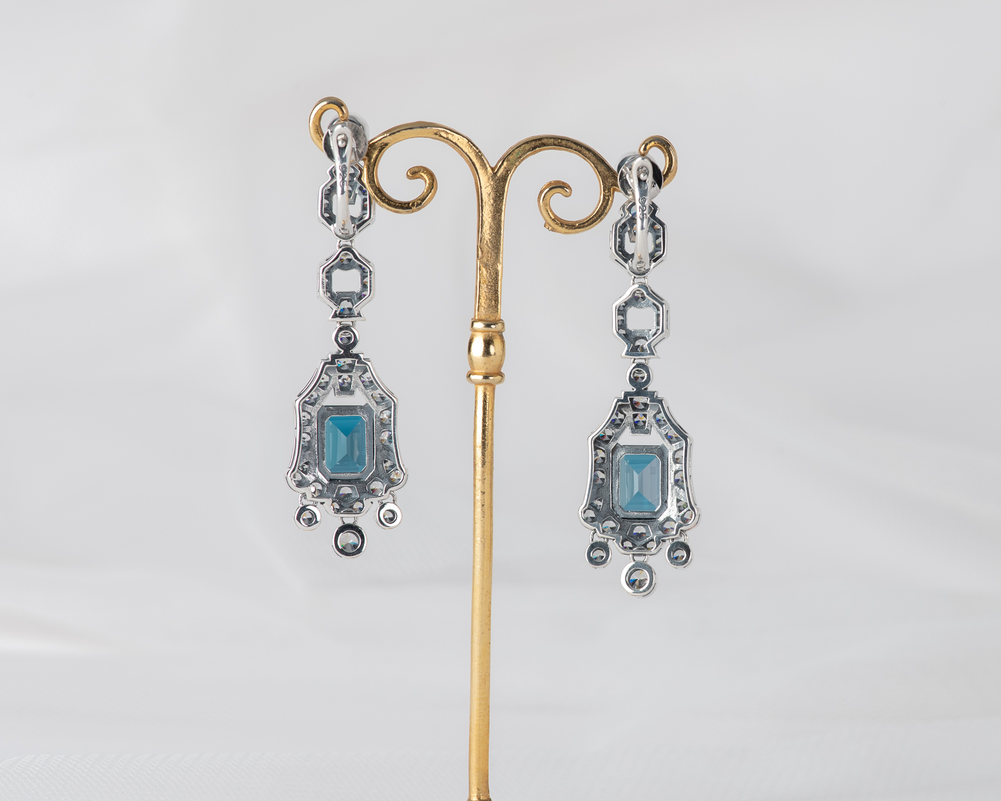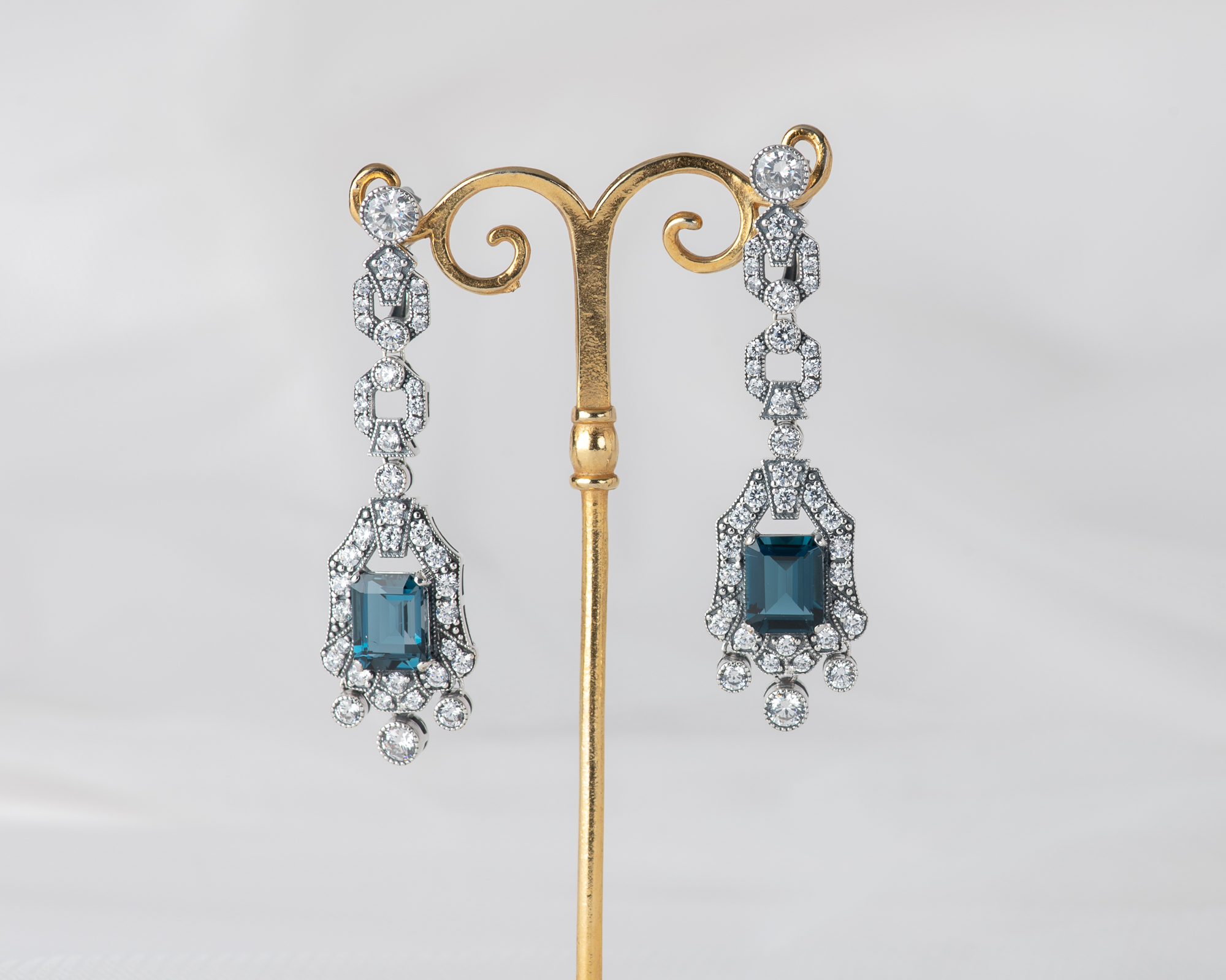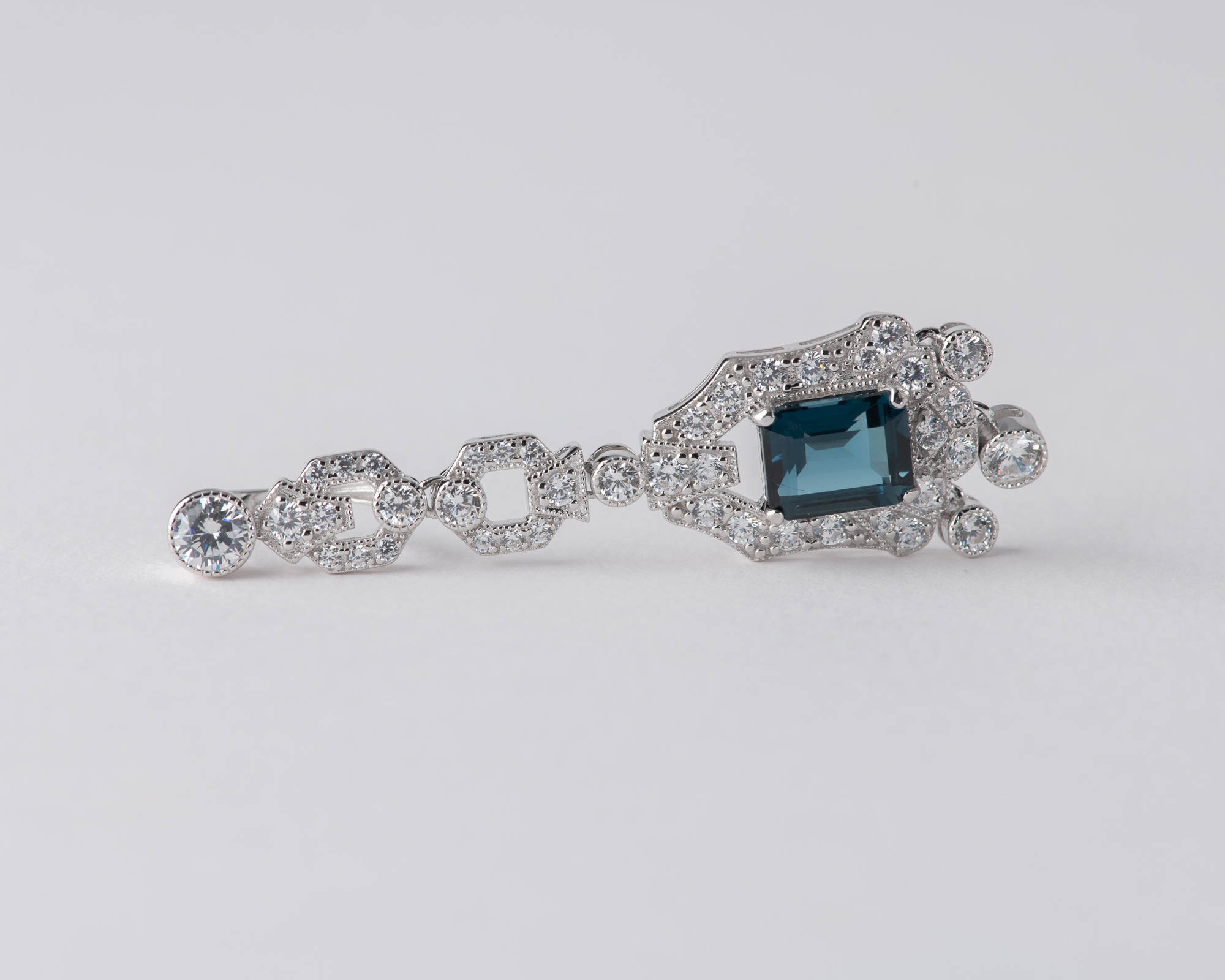 Pendientes realizados en plata con circonitas y topacio natural en tono London Blue.