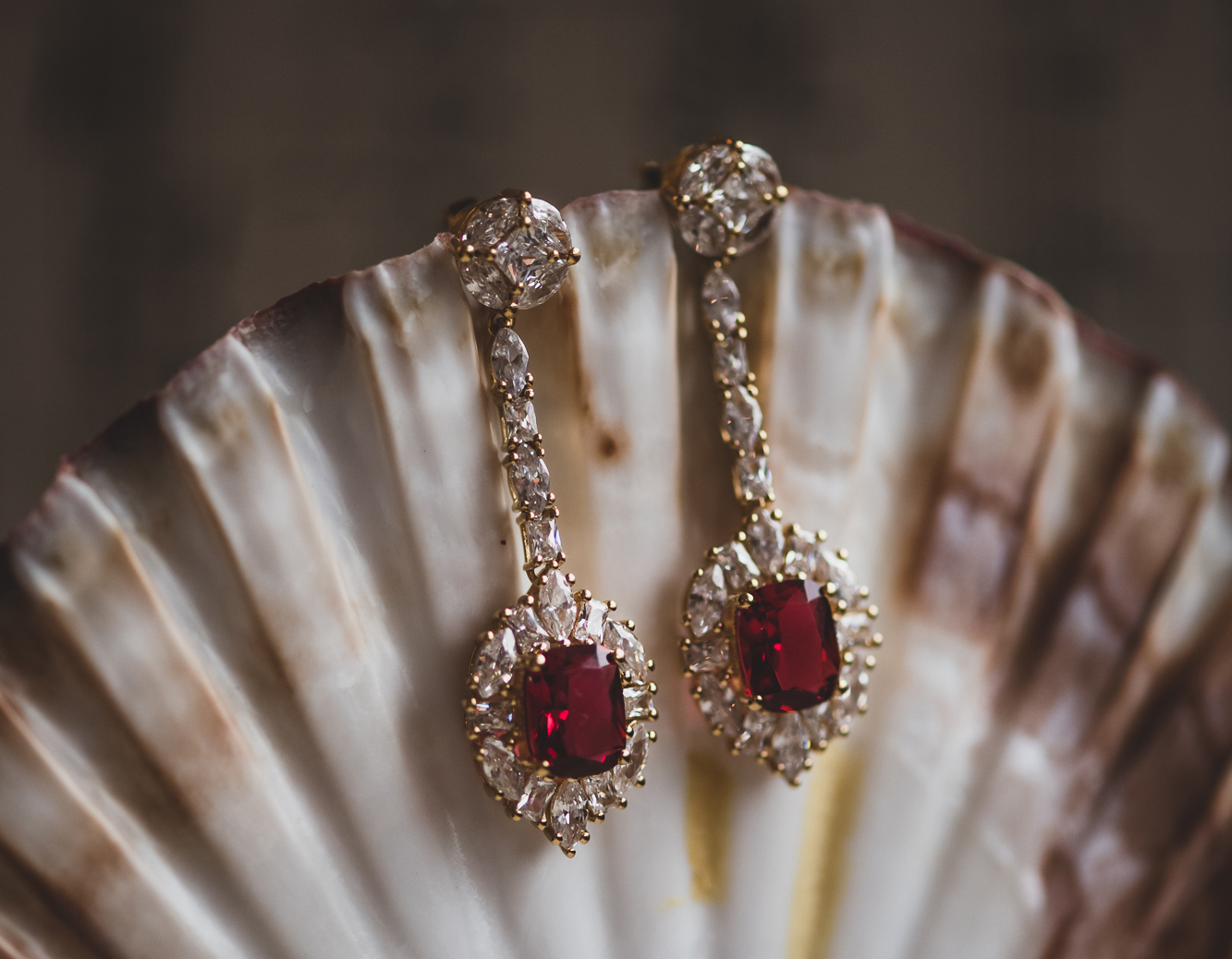 Inspirados en las líneas geométricas y la sofisticación del movimiento Art Déco, estos pendientes están realizados en plata bañada en oro con un delicado engaste de circonitas que aportan luz y equilibrio. En el centro, una circonita roja despliega su tonalidad profunda y elegante, evocando el lujo contenido de los años 20.