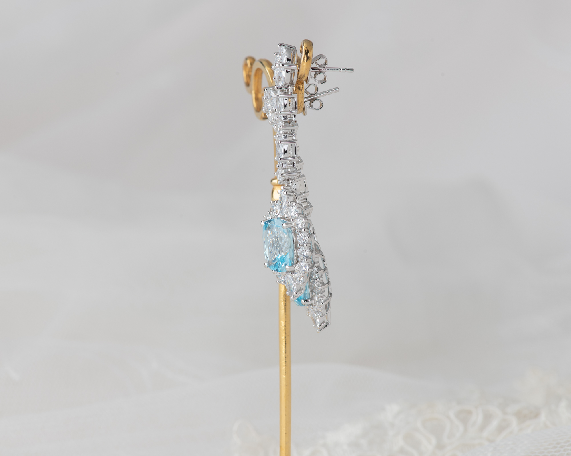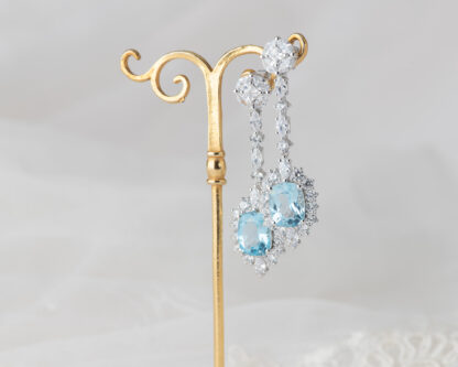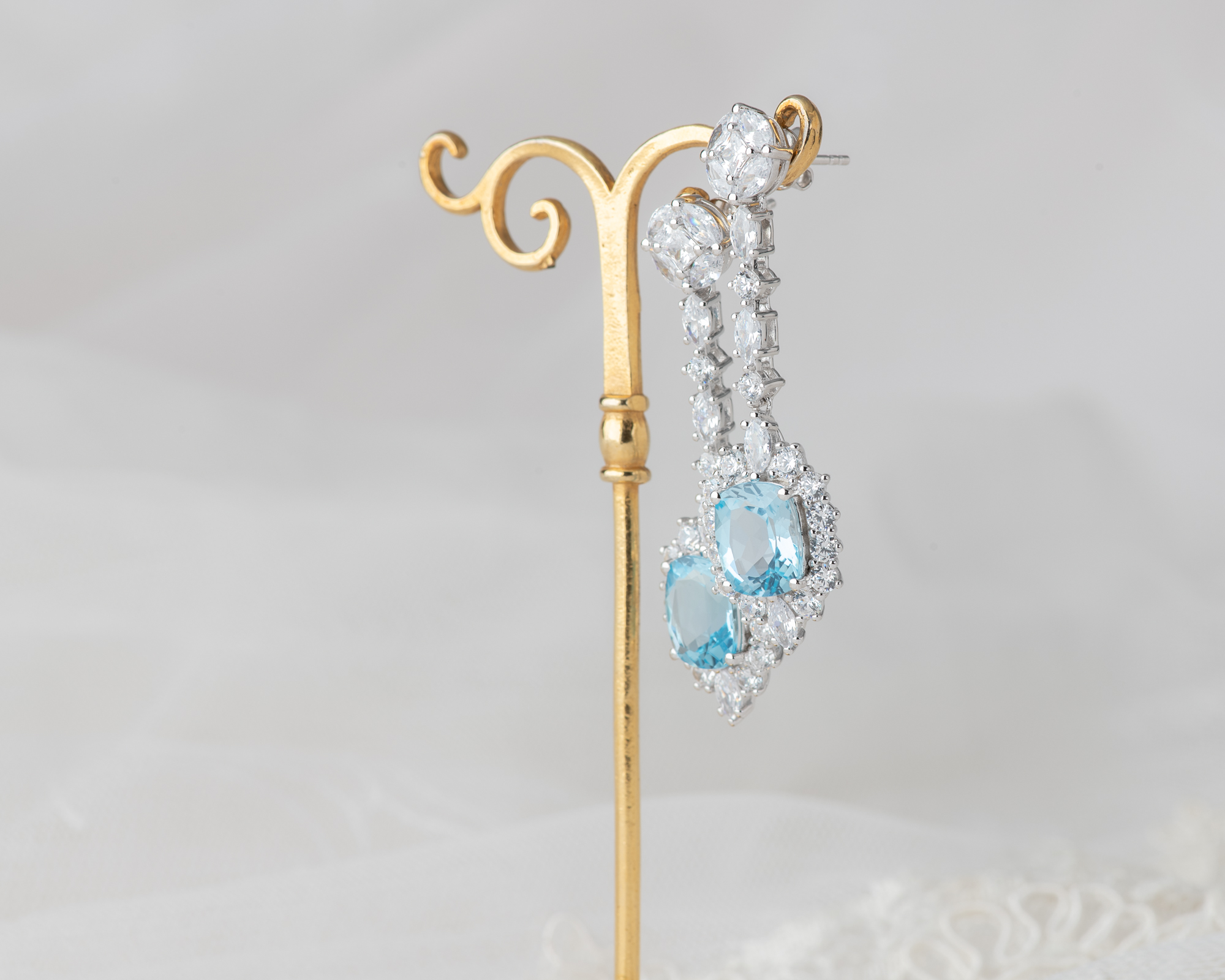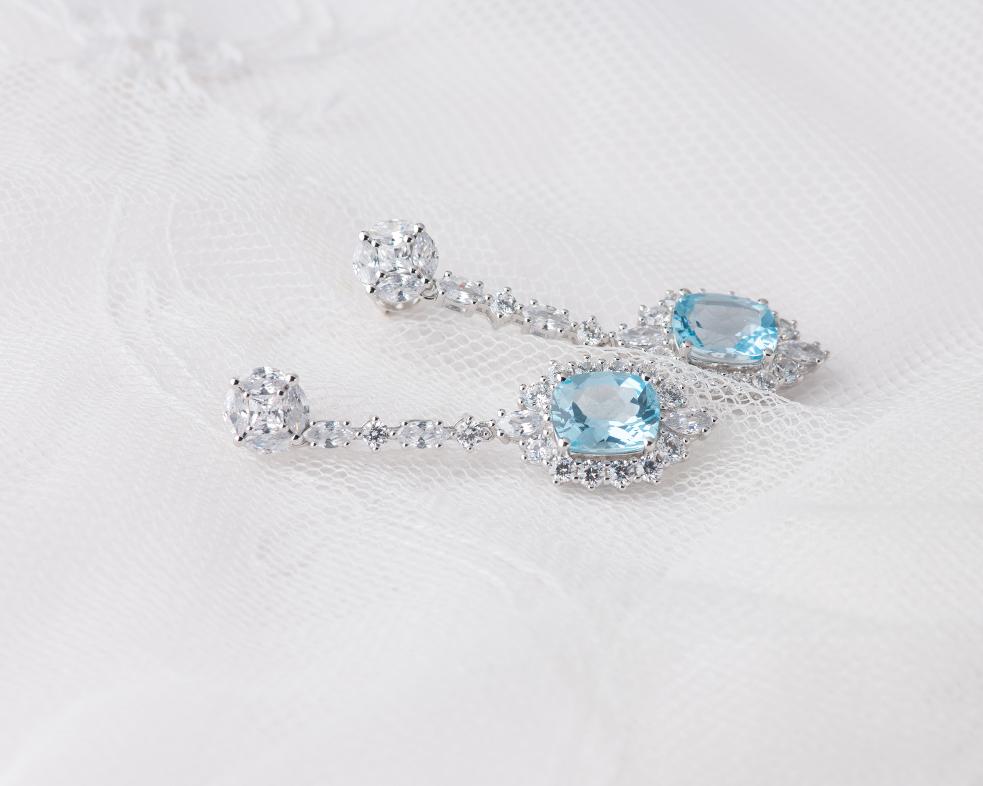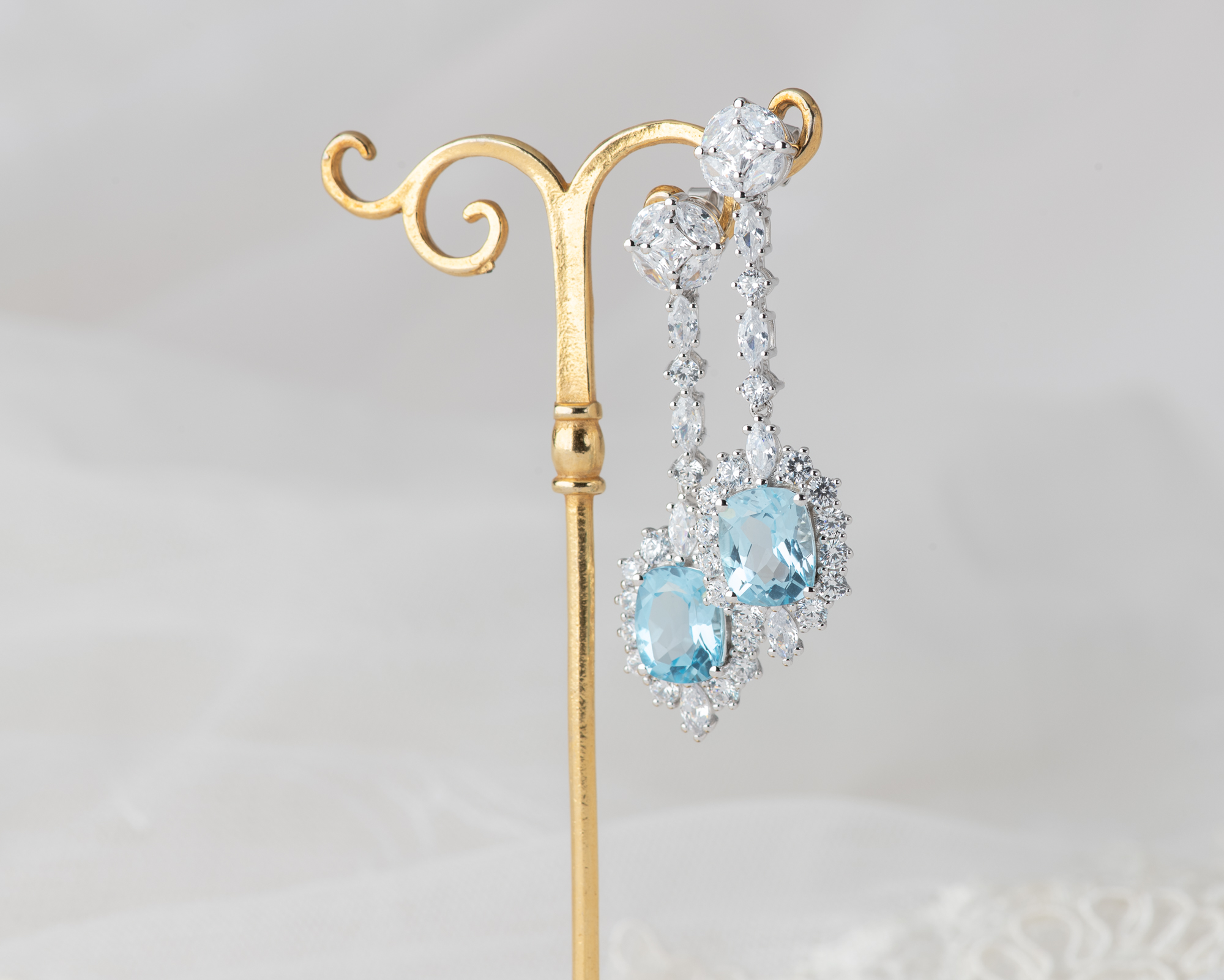 Inspirados en las líneas geométricas y la sofisticación del movimiento Art Déco, estos pendientes están realizados en plata con un delicado engaste de circonitas que aportan luz y equilibrio. En el centro, un topacio azul claro despliega su tonalidad profunda y elegante, evocando el lujo contenido de los años 20.