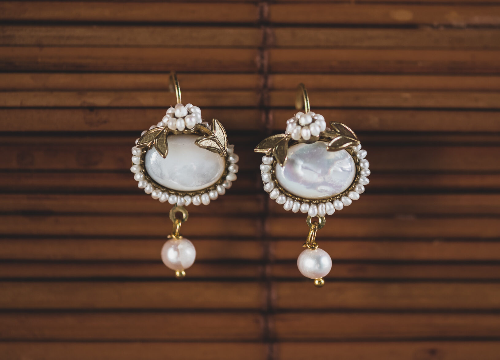 Pendientes en latón con perlas de agua dulce.