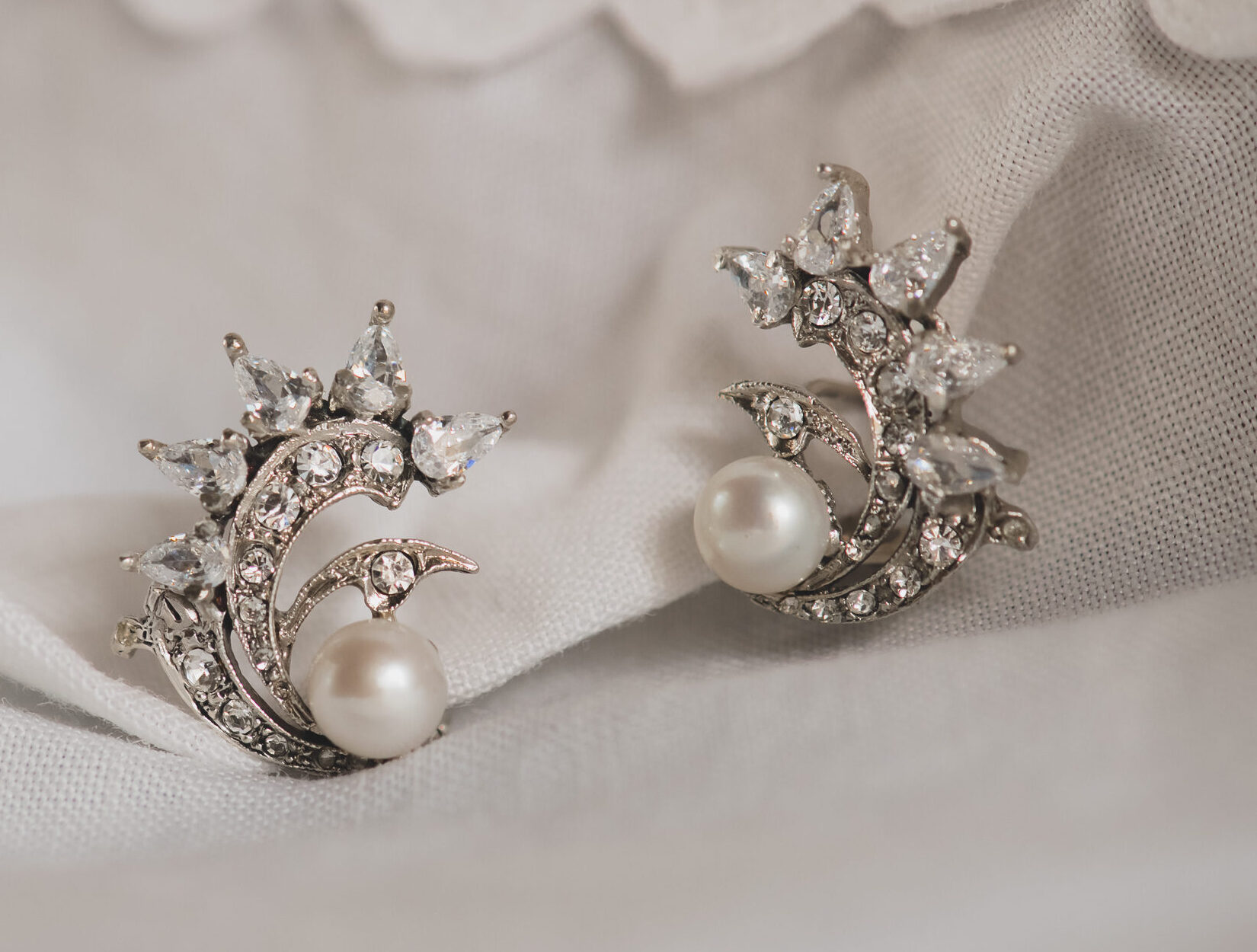 Pendientes de plata con cristal tallado y perla de agua dulce. Están Inspirados en unos pendientes de Grace Kelly y nos han servido de inspiración para los pendientes Bianca.