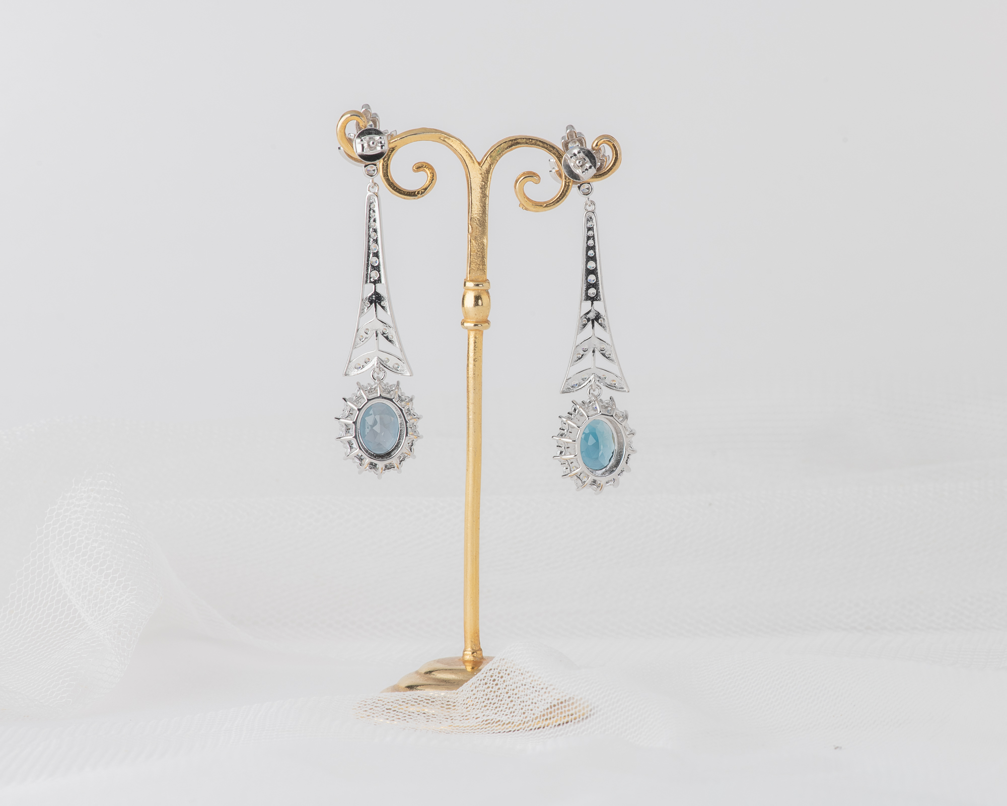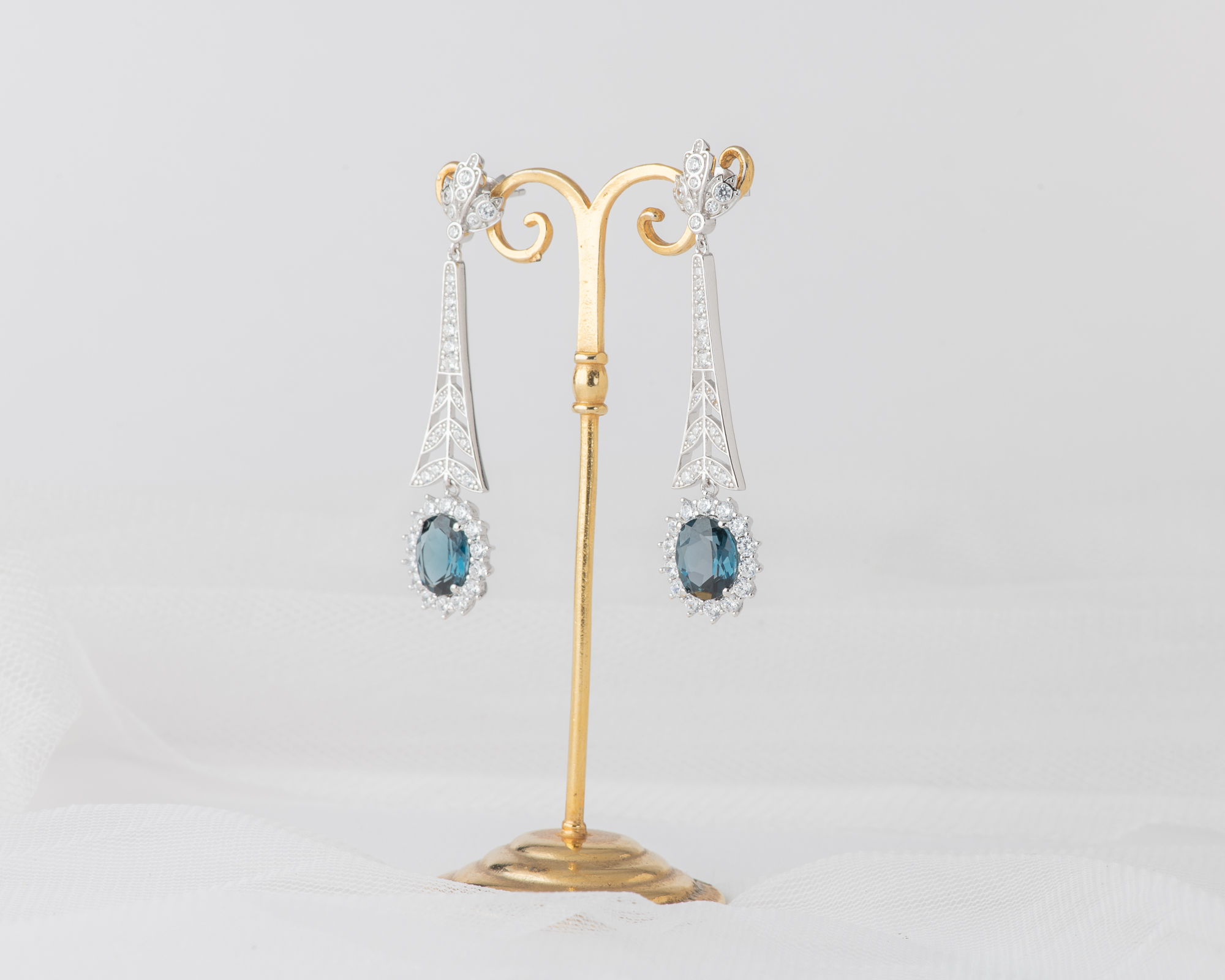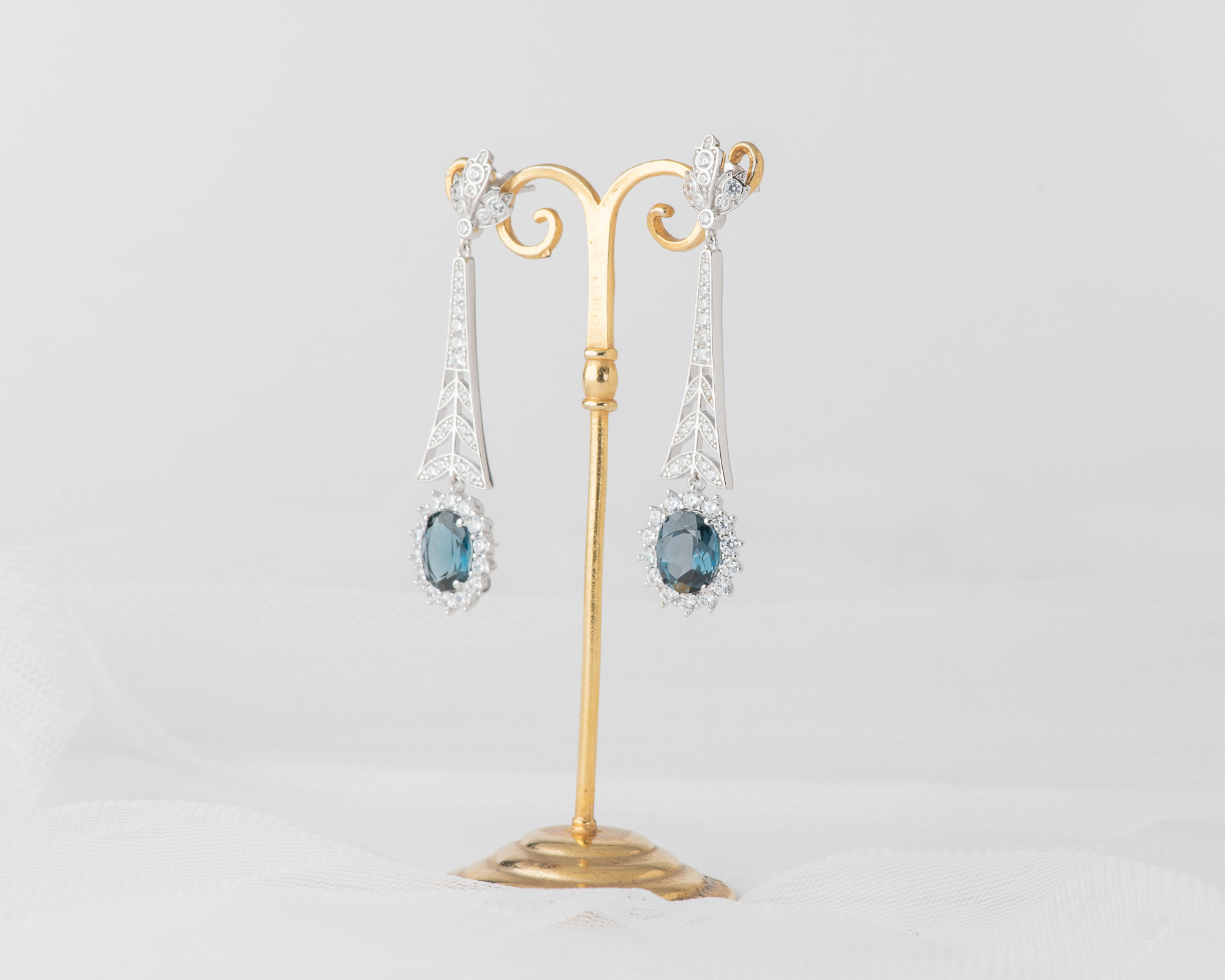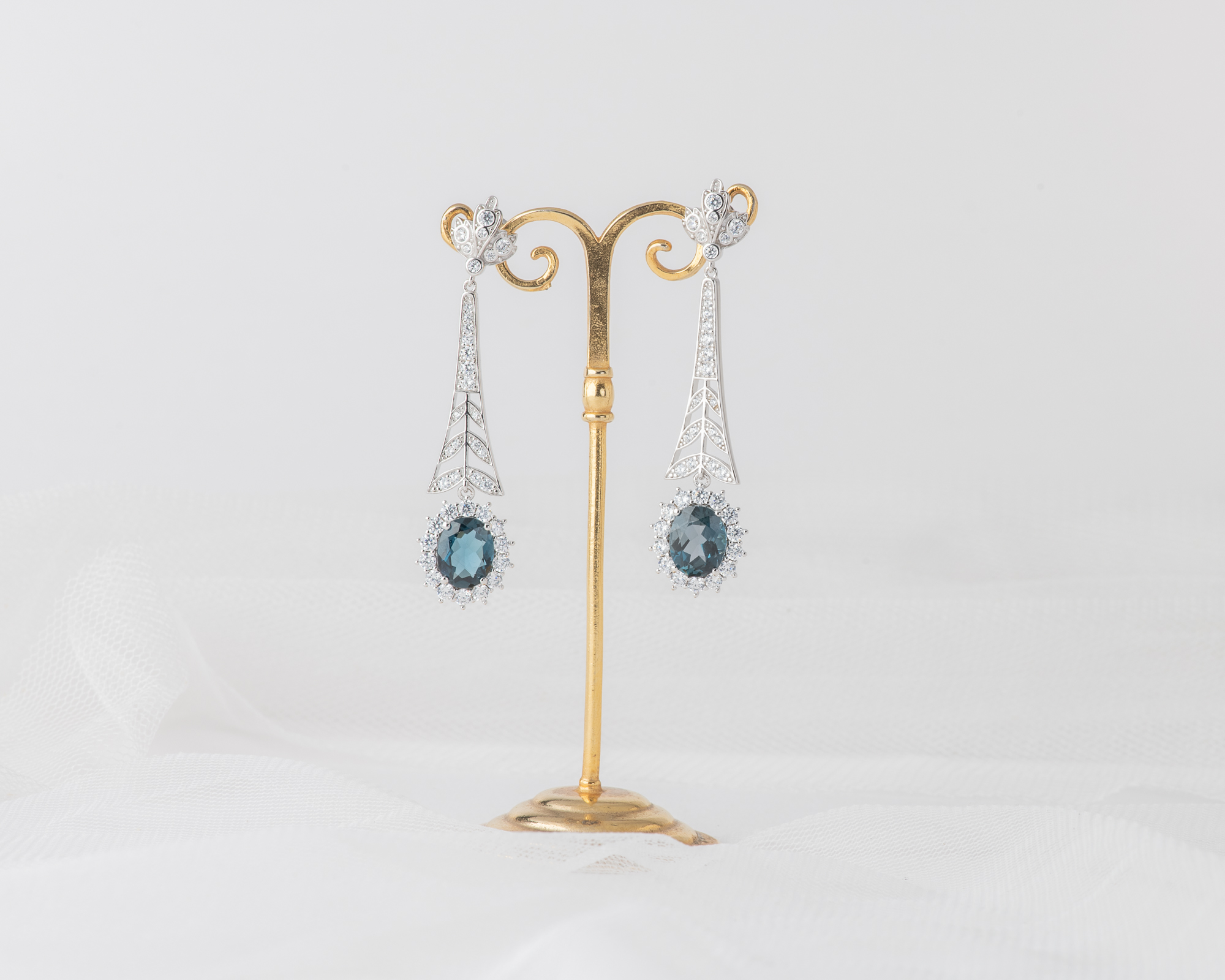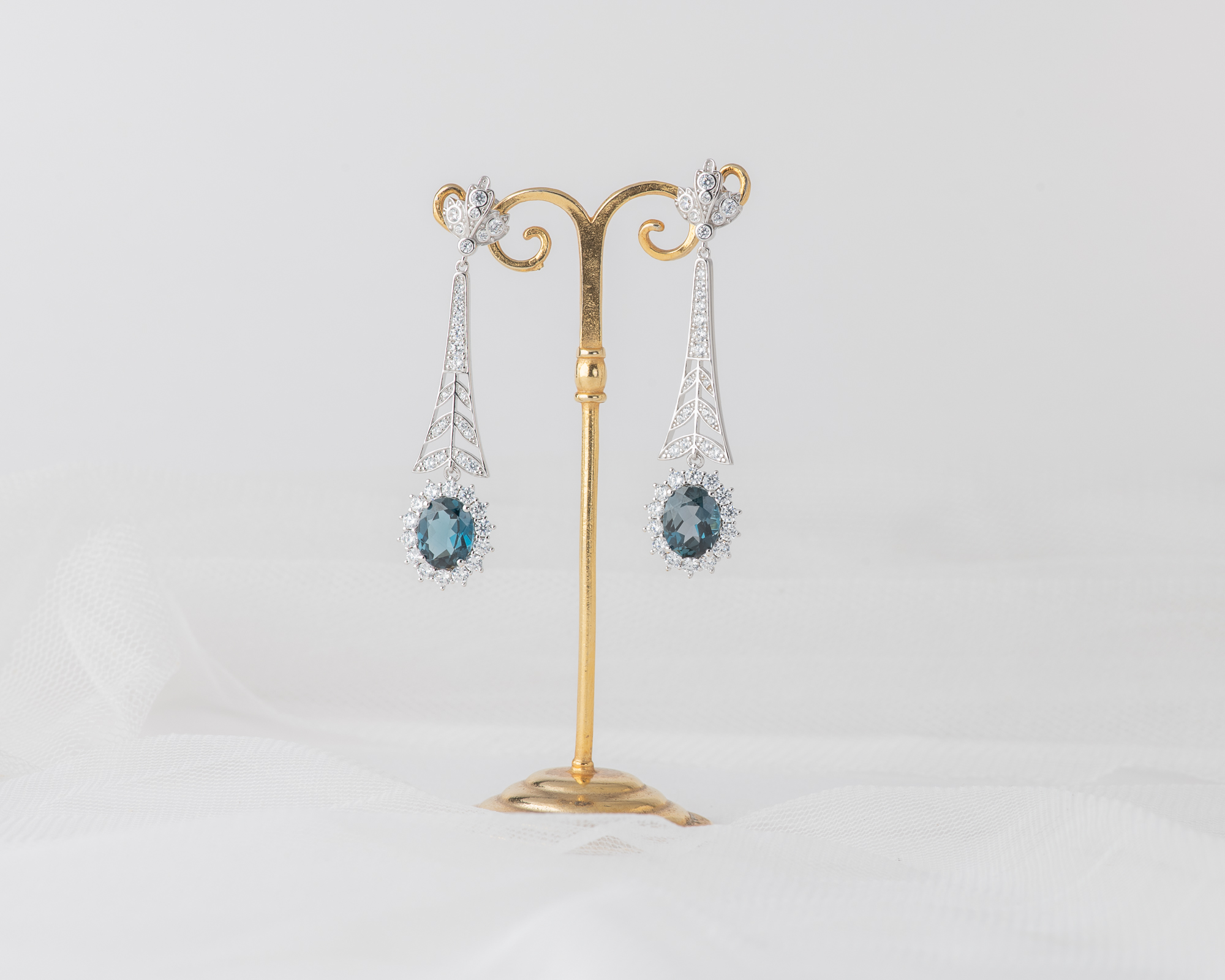 Pendientes realizados en plata con circonitas y una piedra natural de topacio en tono london blue.