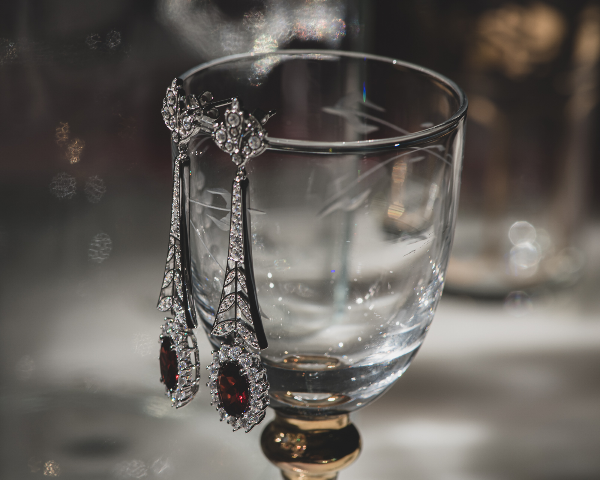 Pendientes realizados en plata con circonitas y una piedra natural de granate.