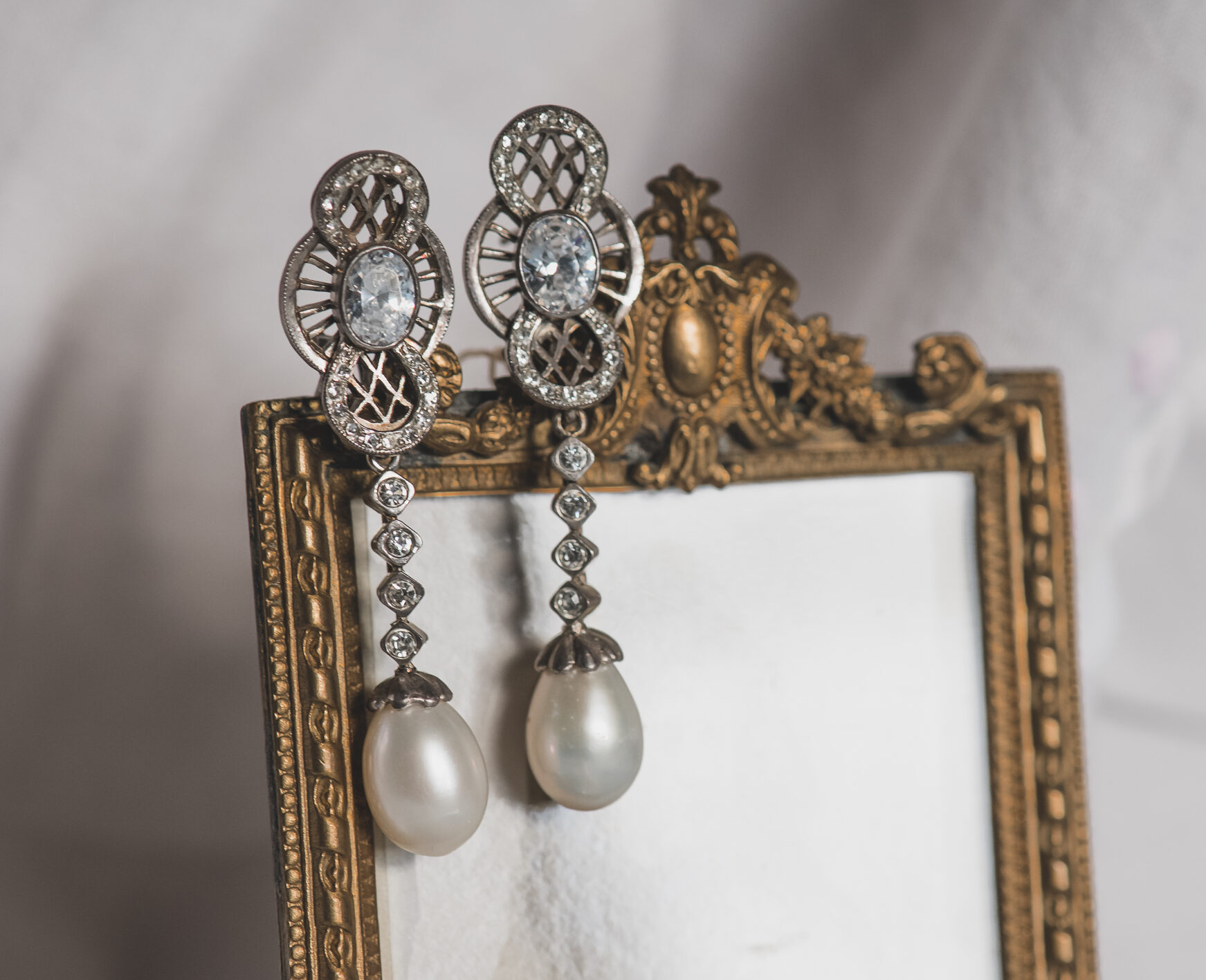Pendientes de plata con cristales y perlas de agua dulce.