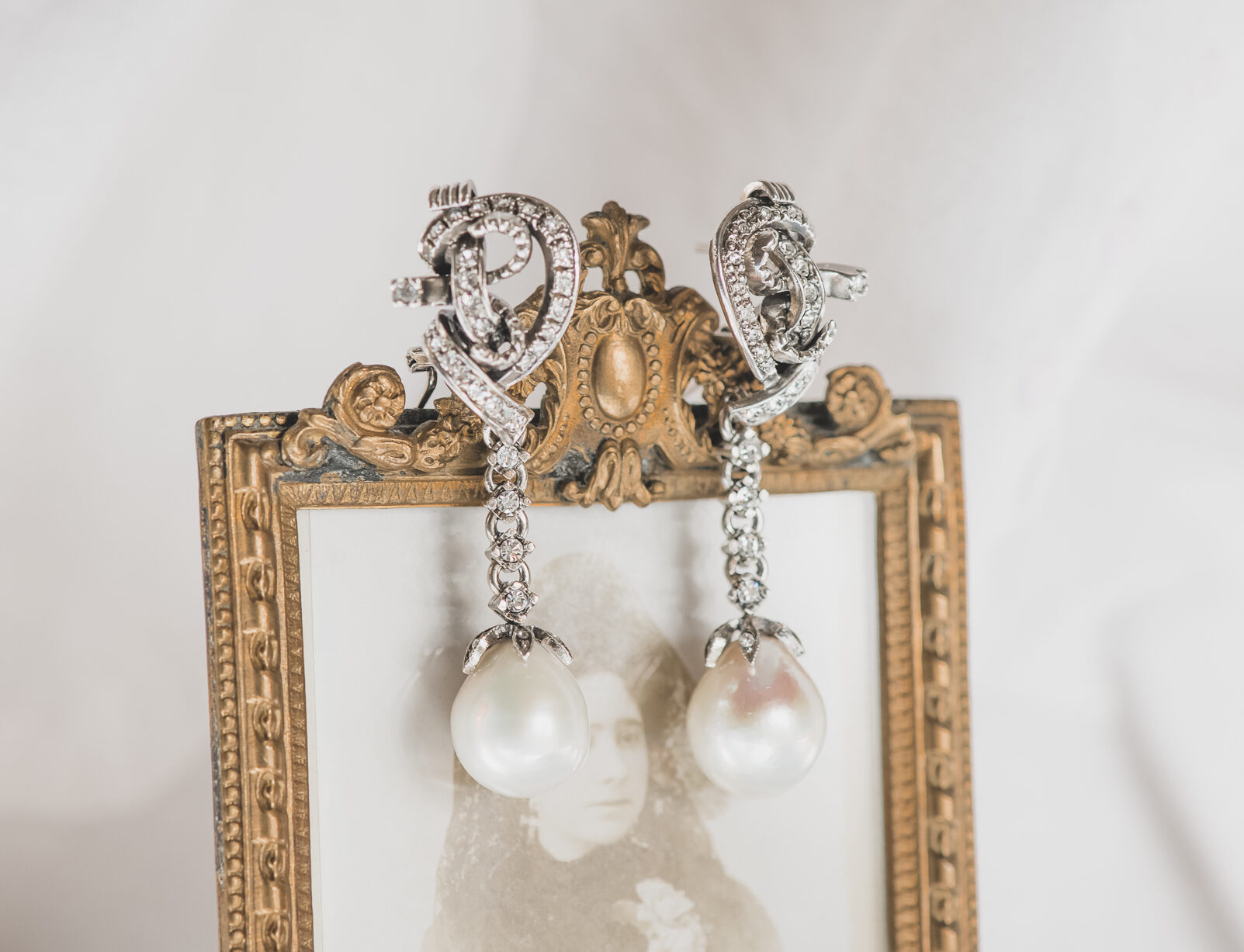 Pendientes realizados a mano en plata con circonitas y perla de agua dulce barroca.