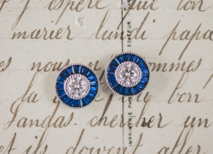 Pendientes estilo Ojo de Perdiz realizados en plata, con una moissanita central de 3 mm que despliega un brillo profundo y sofisticado. A su alrededor, un halo de circonitas azules intensifica su luz, creando un efecto de pureza y armonía visual. Una joya discreta pero llena de carácter, perfecta para iluminar el rostro.