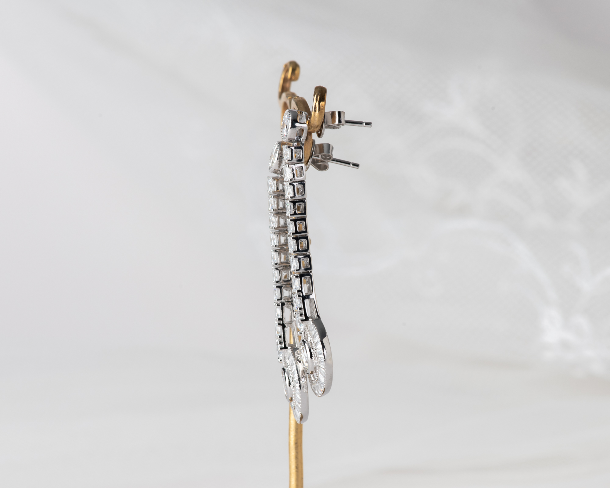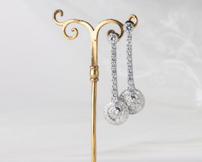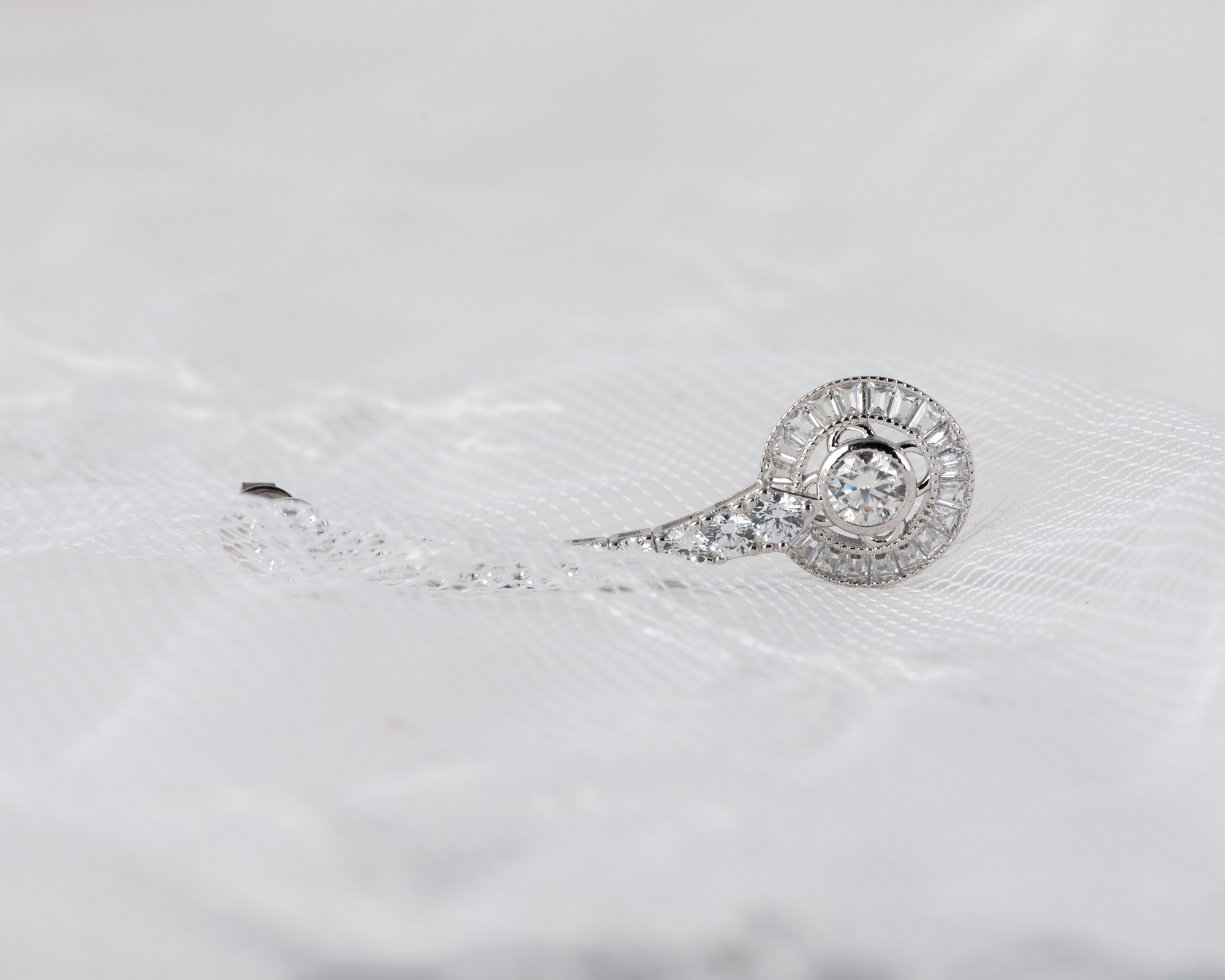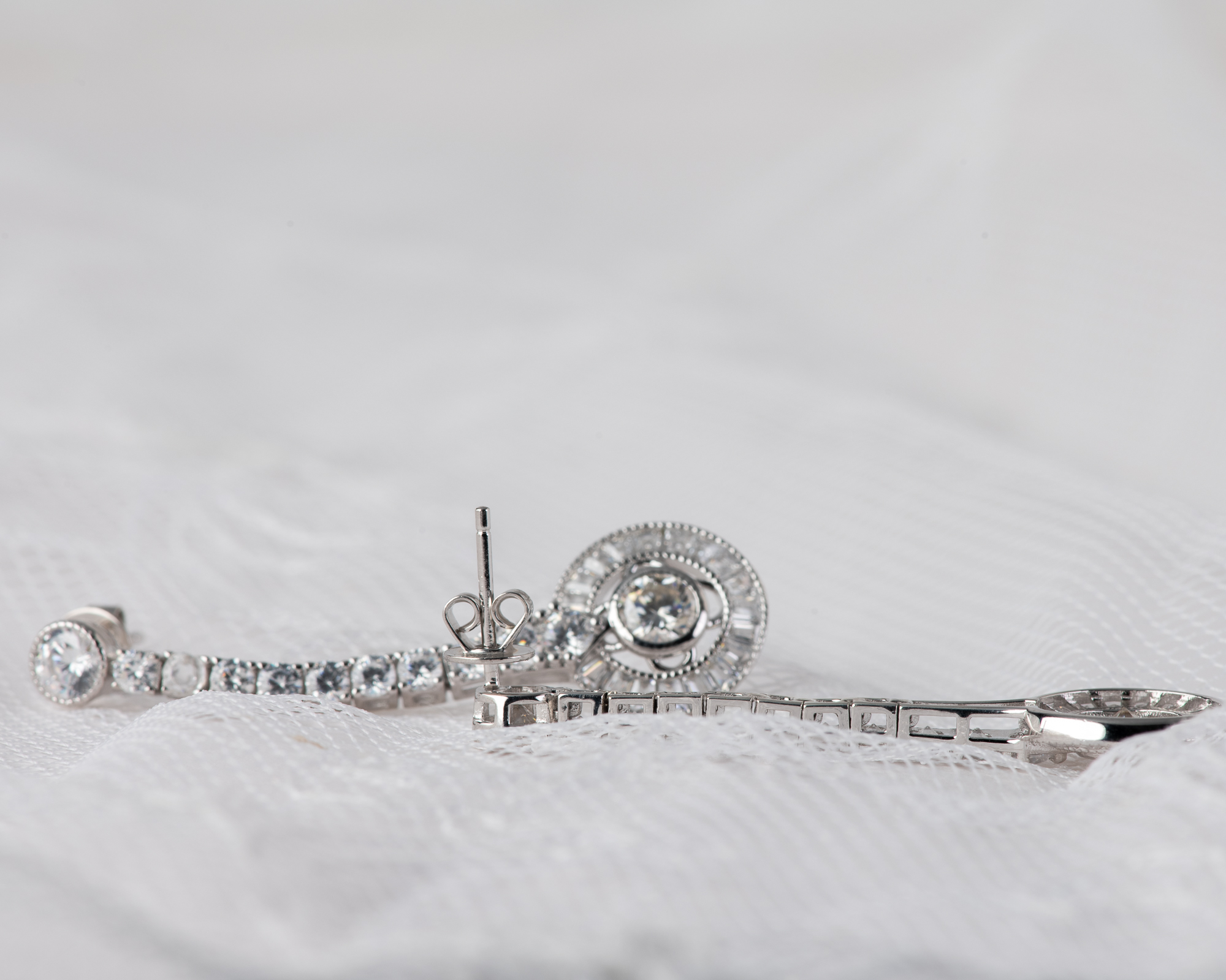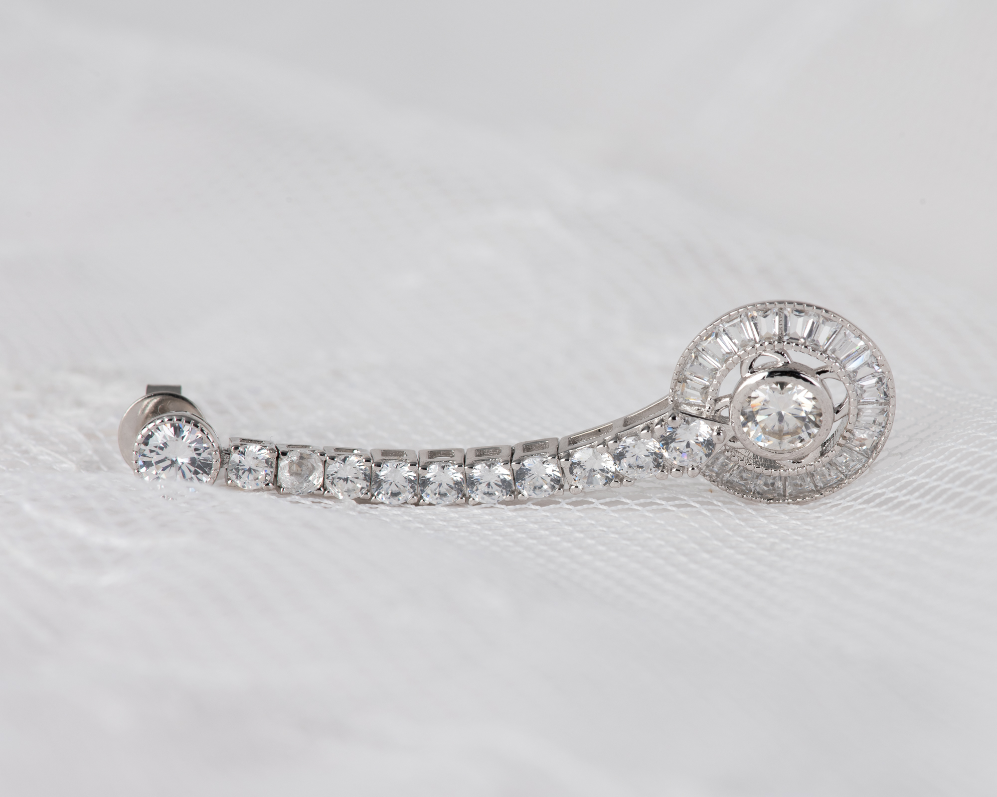 Pendientes estilo ojo de perdiz realizados en plata con una moissanita central y circonitas blancas.