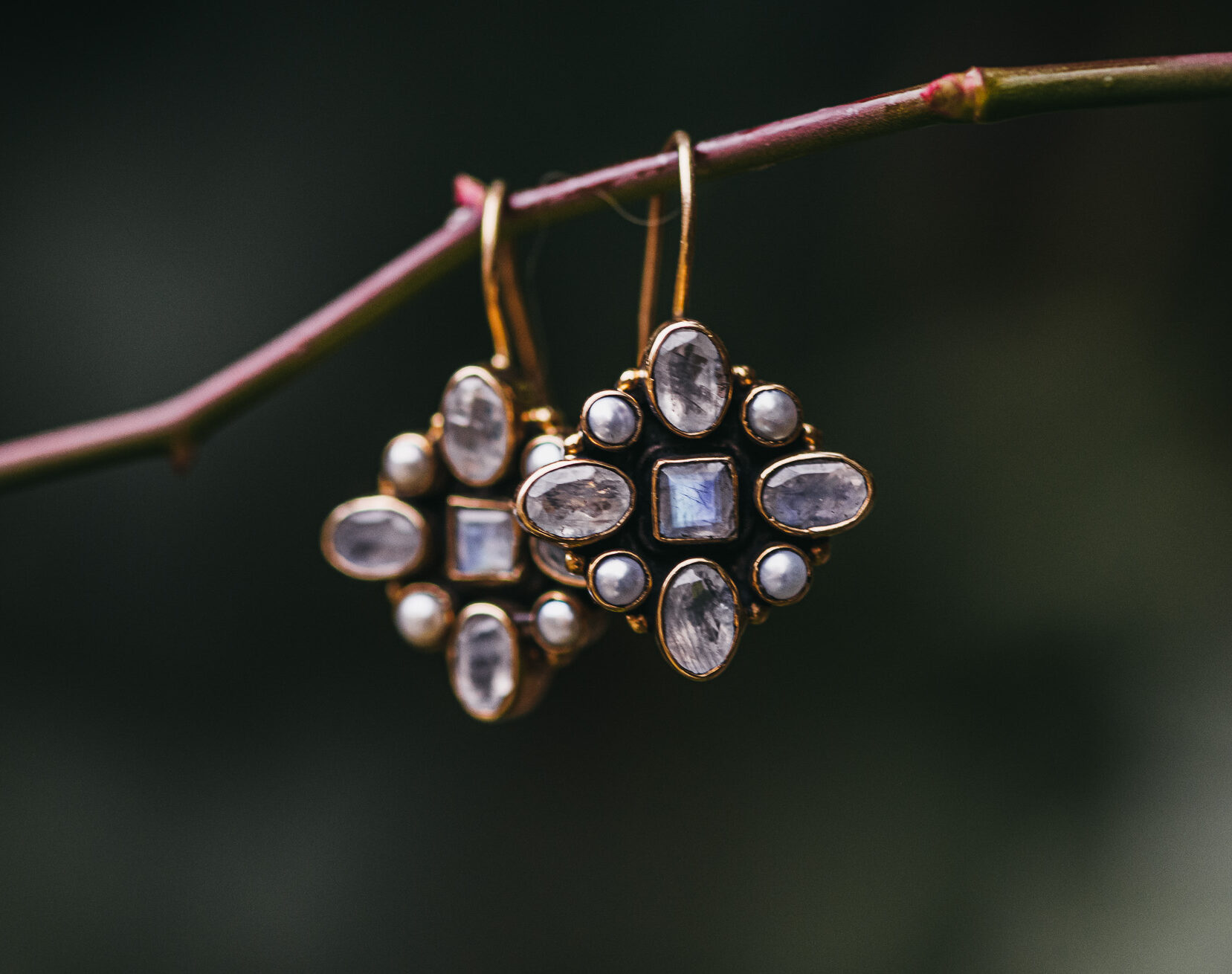 Los pendientes Owen están hechos en plata dorada con piedra de la luna y perlas. Son una reproducción de una joya de la época de El Renacimiento. Aportan mucha luz gracias a las piedras naturales y tienen un tamaño perfecto para convertirse en tus nuevos pendientes de diario.