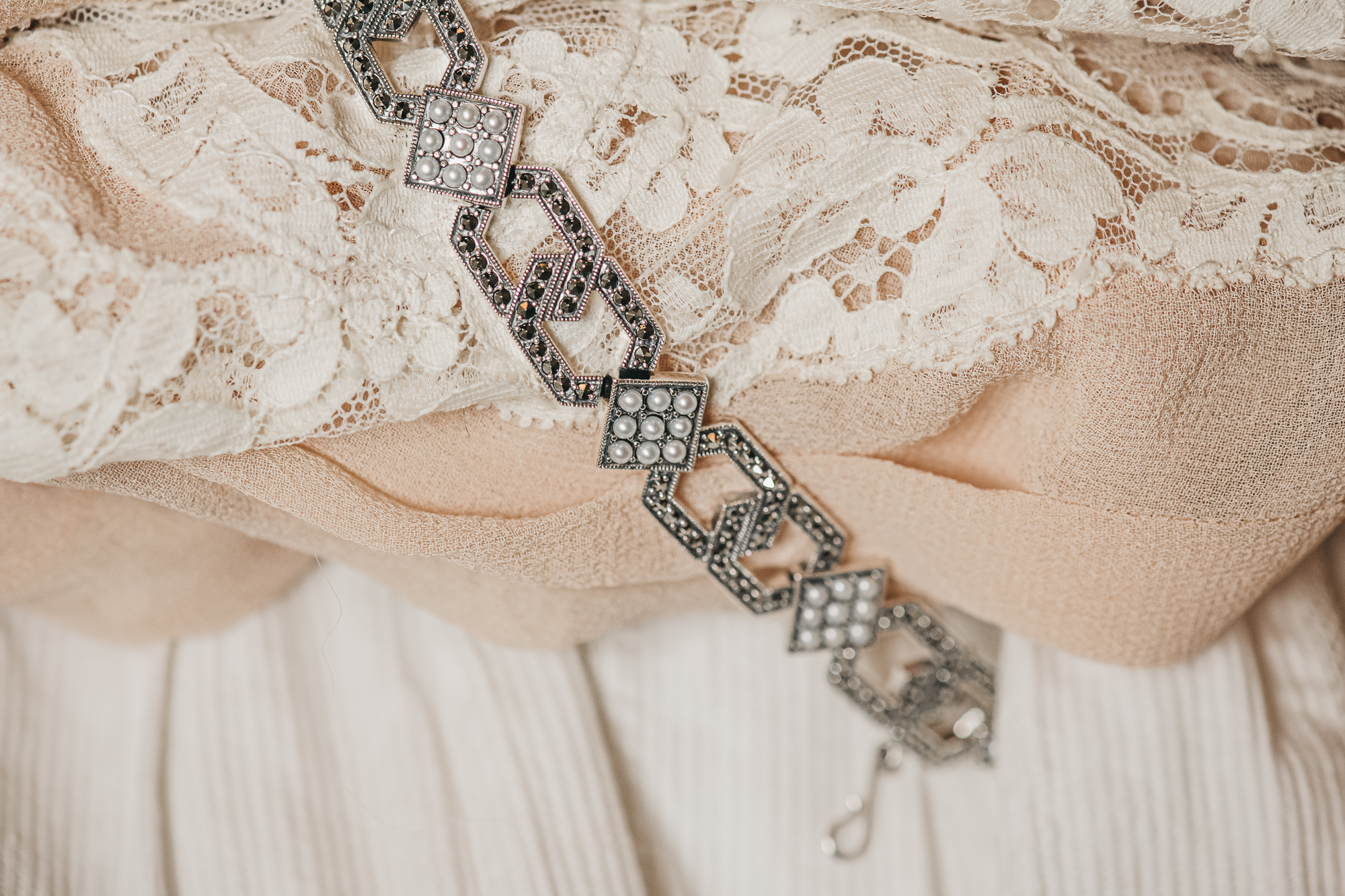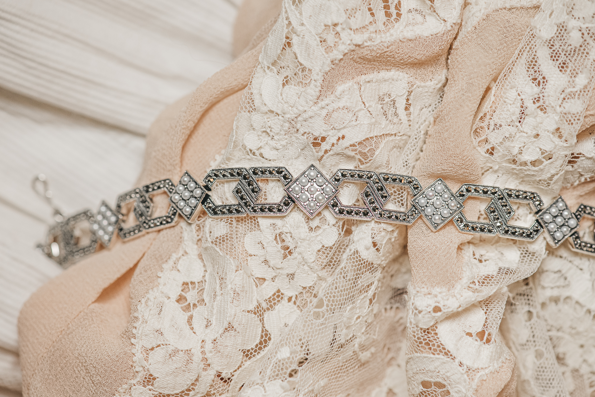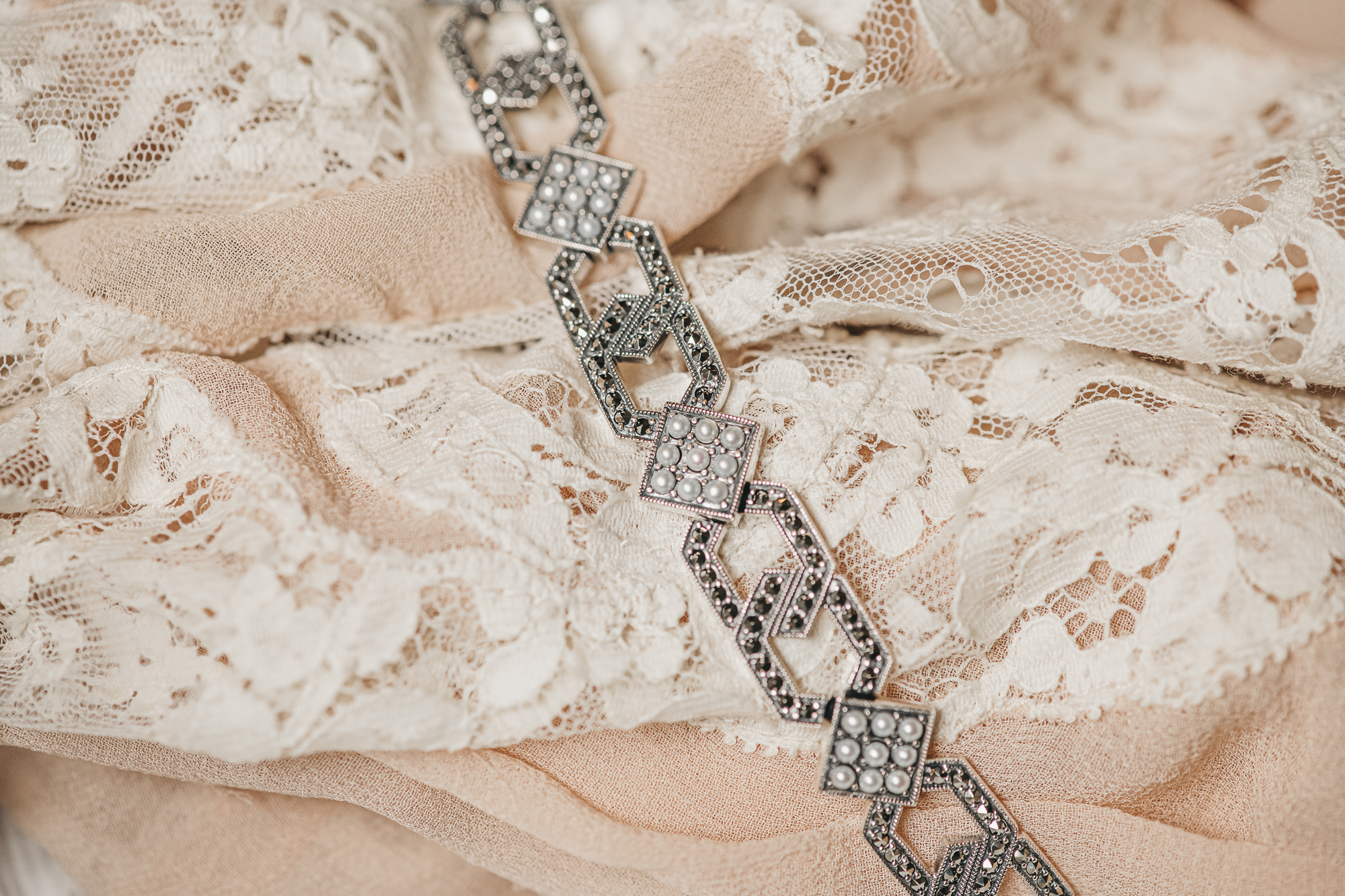 Pulsera realizada en plata con marcasitas y perlas de agua dulce.